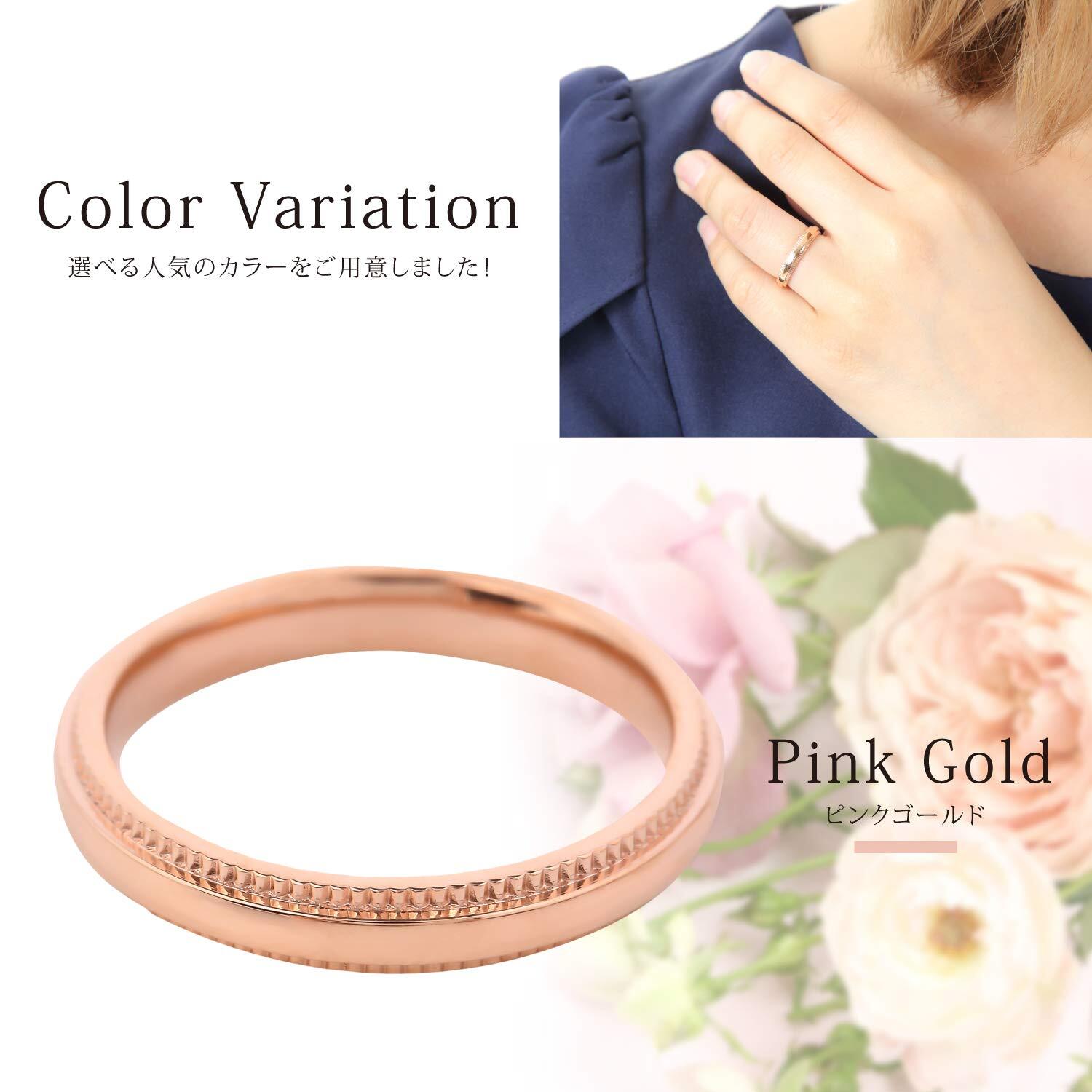 エスコート サージカルステンレス 316L ミル打ち リング サイズ (ピンクゴールド, 7)