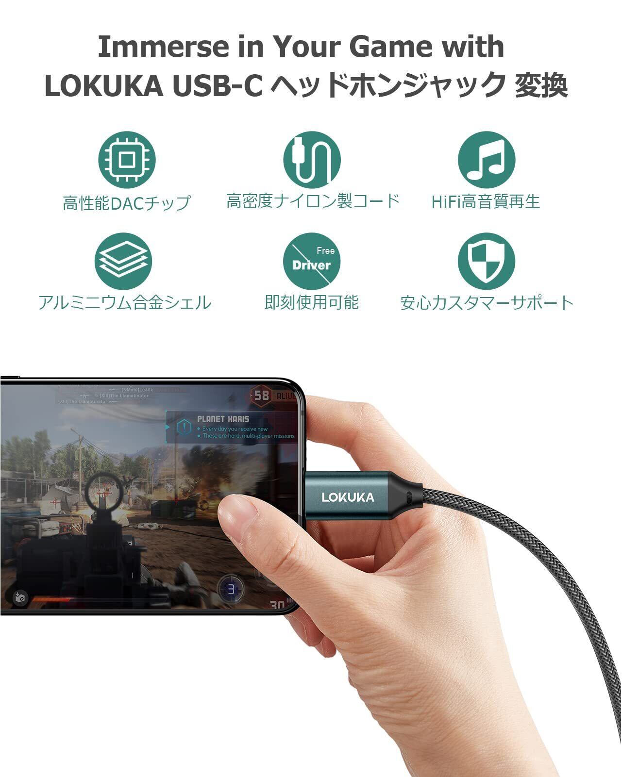 LOKUKA usb c イヤホンジャック DAC内蔵 ハイレゾ対応 高耐久 通話/音量調整/音楽再生対応 イヤホン変換アダプタ MacBook/iPad Pro/Air/Android/type c 機器用 20cm LC1