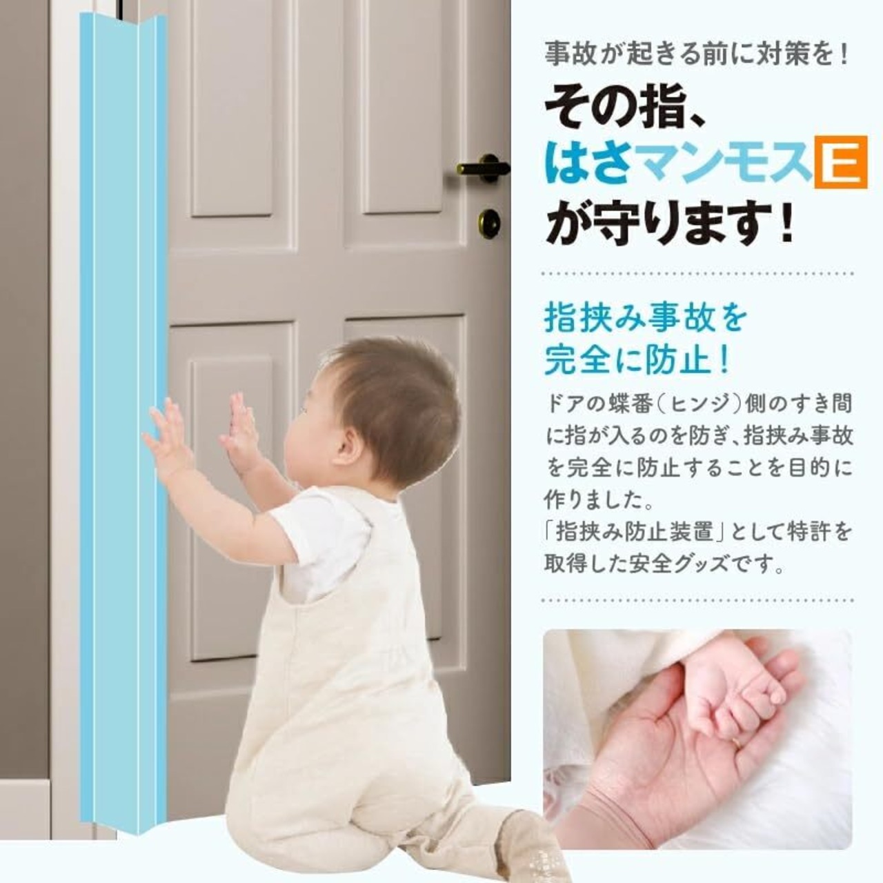 【用途】ドアへの指はさみ防止グッズ。ドアの吊元側に指を挟まないようにカバーする器具です。歩き始めの赤ちゃんや小さい子供のいるご家庭やご高齢の方が多く利用している施設など、指はさみ事故が起きる危険性が高いドアへの設置におすすめです。