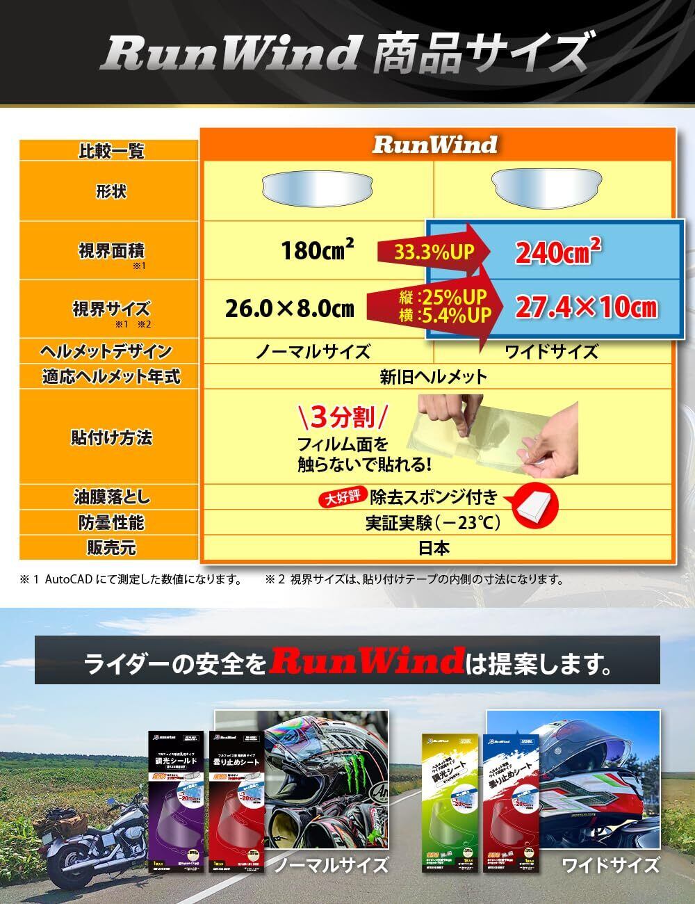 【RunWind】 曇り止め シート フルフェイス ジェット ヘルメット 対応 バイク くもり止め シールド クリア (ワイド)