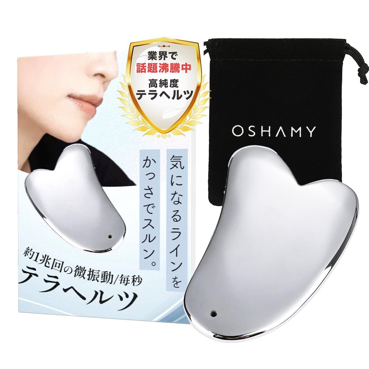 かっさ かっさプレート テラヘルツ 高純度99.6% マッサージ 小顔 顔 ボディ用 巾着袋付き OSHAMY (ハート型)