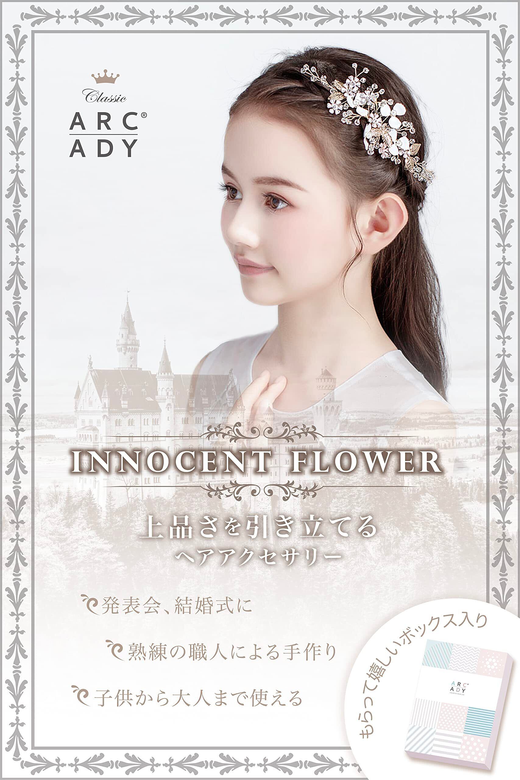 ヘアアクセサリー 髪飾り ボックス入り 発表会 結婚式 [ARCADY] 子供 大人も使える 職人の手作り コームタイプ (イノセントフラワー)