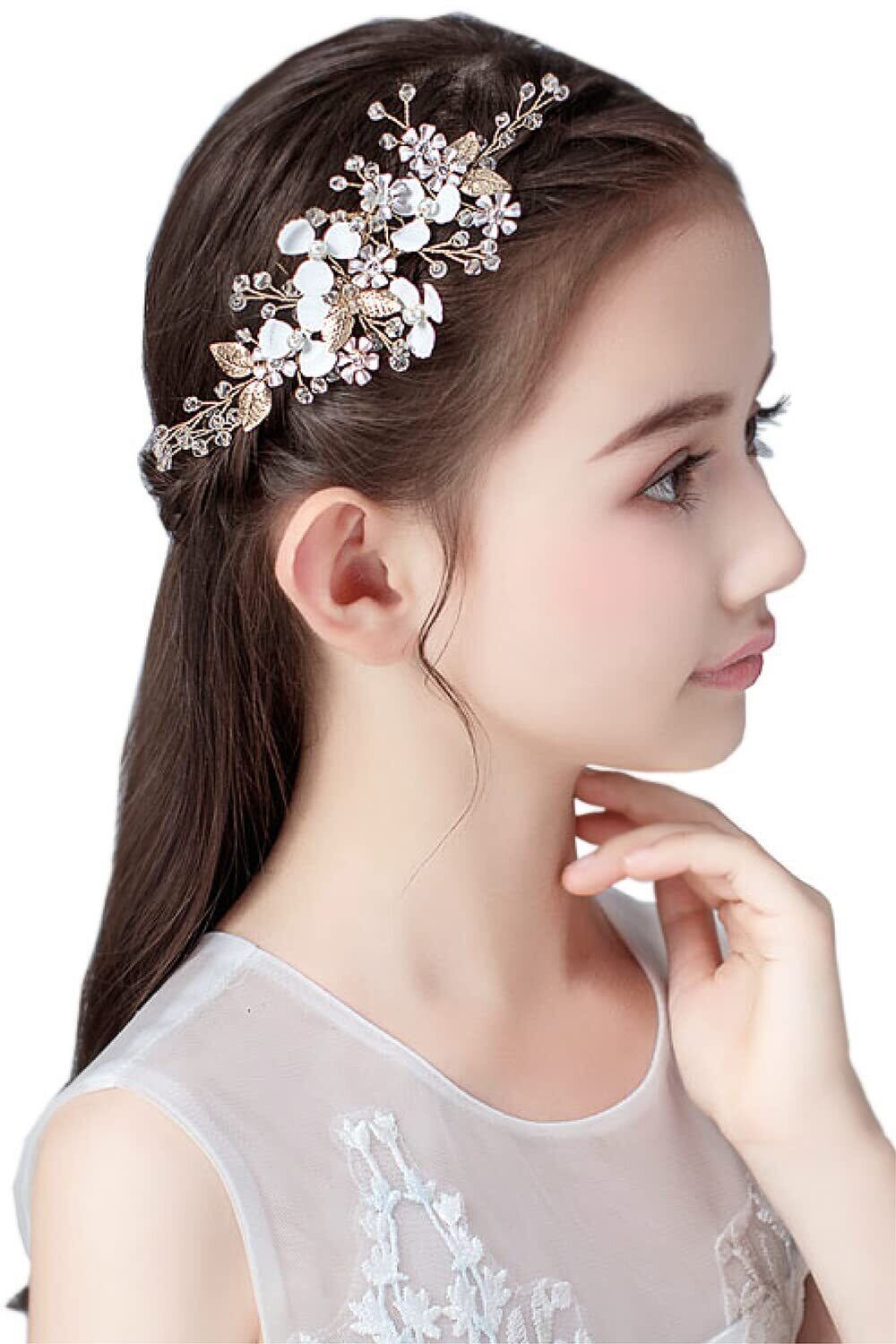 【あどけない瞳に瞬く未来】リトルとミドルフラワーをバランスよくあしらい、ライトストーンとリーフを散りばめたコームタイプの ヘアアクセサリー です。少女のあどけなさを経て、成長する儚い美しさを表現しました。バランスよい上品な髪飾りなので、どのお洋服にも合わせやすいです。大きすぎずないので、ちょっとしたパーティーや誕生会にぴったり。発表会 結婚式 入学式 卒業式 にも。お子様だけでなく大人の女性にもお召しになれます。