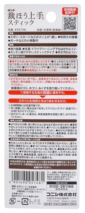特長:アイロン不要。スティックタイプで手が汚れにくい。洗濯・ドライクリーニングOK