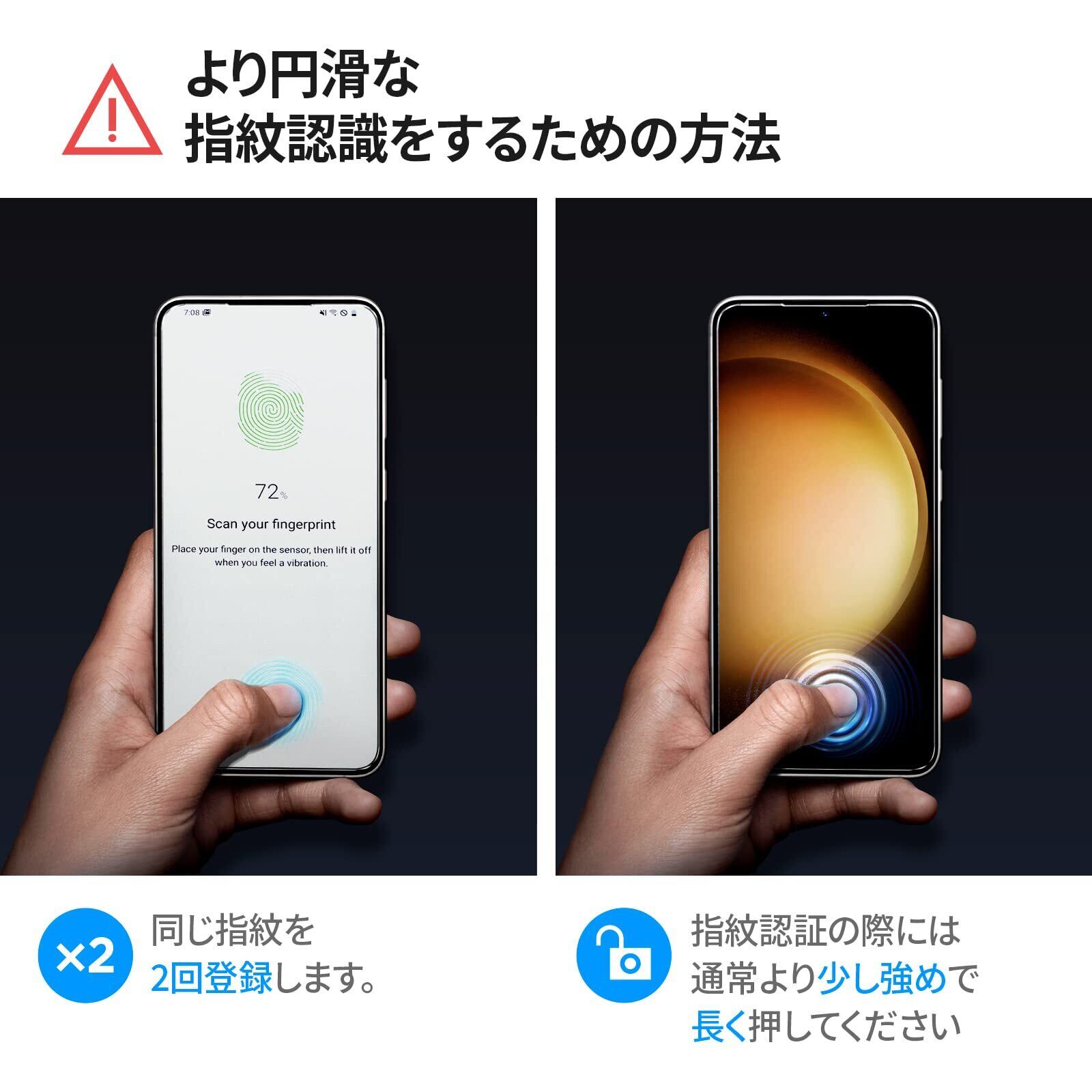 より円滑な指紋認識のため商品貼付け後に同じ指紋を2回ご登録くださることをお勧めします。 指紋認証の際には通常より少し強めで長く押してください。