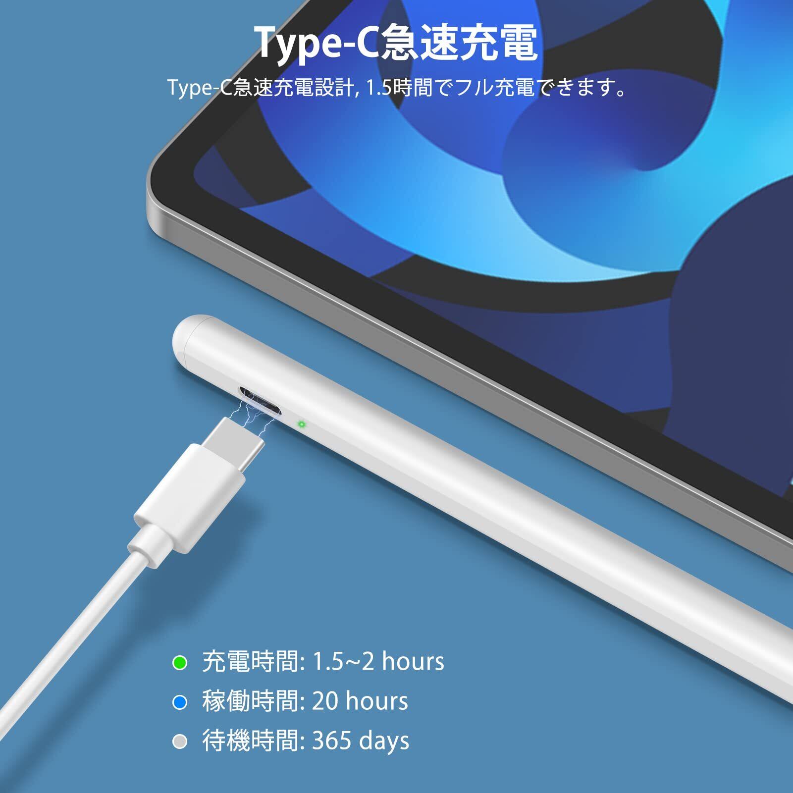 タッチペン iPad ペンシル GOOJODOQ スタイラスペン 高感度 pencil 電量表示/磁気吸着/傾き感知/誤作動防止 軽量 耐摩 USB充電式 2018年以降iPad/Pro/air/Pamini対応
