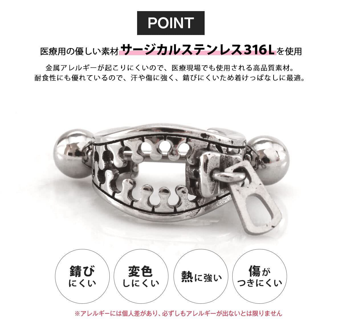 サージカルステンレス316L証明書取得店 軟骨ピアス 軟骨用 ジッパー ジップ ファスナー チャック ユニーク 個性派 透かし クール