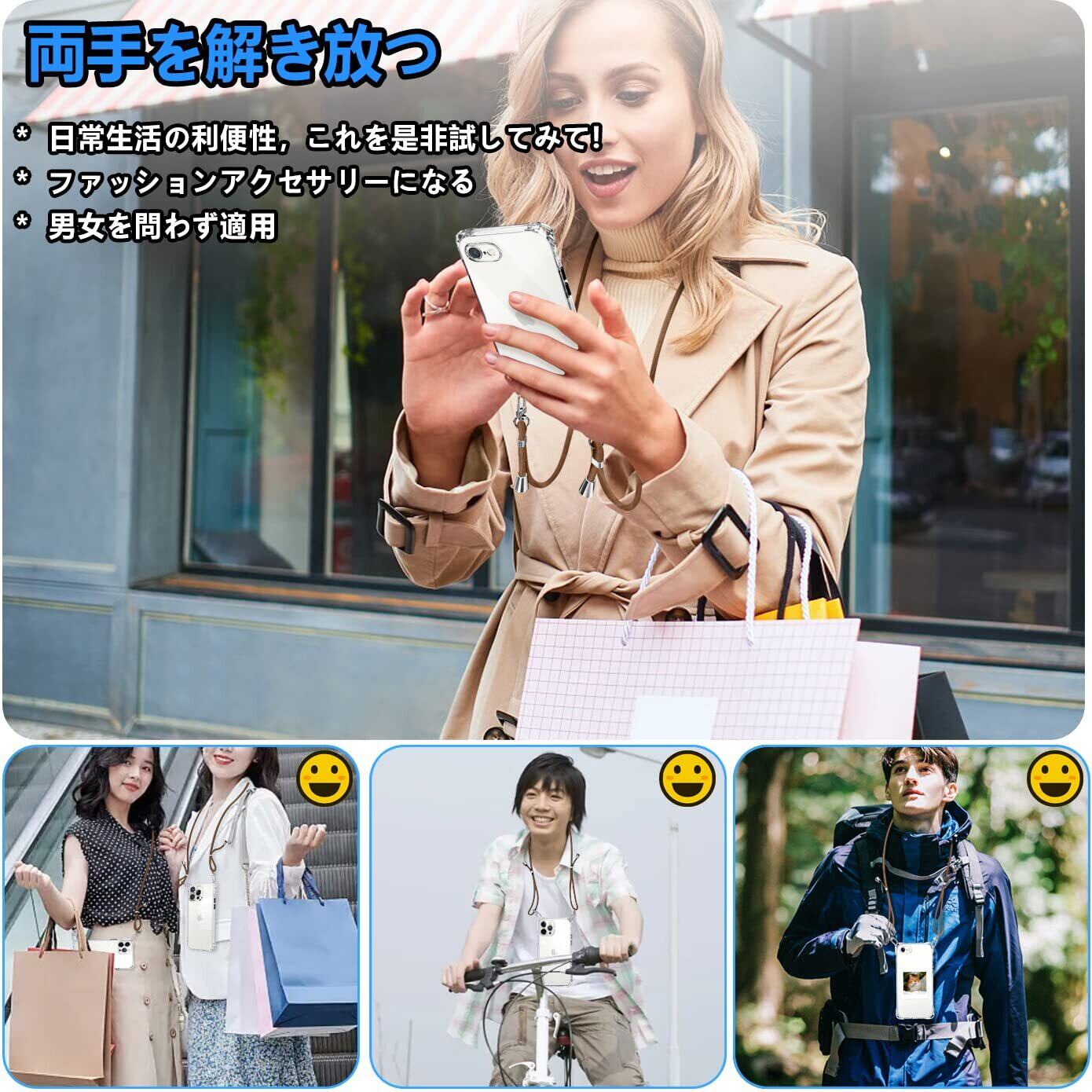 【多目的キャリー & ファッションデザイン】電話ケースの特別な四隅のデザインにより、ストラップを垂直または水平にリンクできます、調節可能なストラップにより、サイド、またはフロントに持ち運べるときに完璧にあなたの隣に掛けることができます。 このアクセサリーはファッションだけでなく、通常のストラップよりも快適で実用的です。 特に旅行や、小さなお子様がいるお母さんにおすすめ、手荷物がある時にスマホを持ち続ける必要がなくなりますし、スマホを落としたり無くしたりといった心配もなくなります、バッグから携帯を取り出す手間がはぶけます。