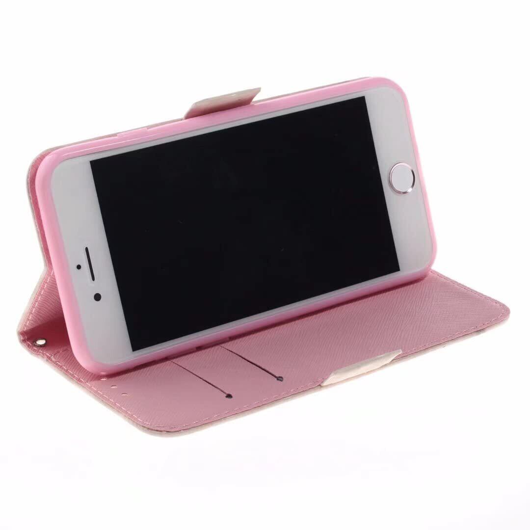デザイン:おしゃれな絵柄、便利な手持ちストラップ付き、ゴージャス感ある手帳型ケース。