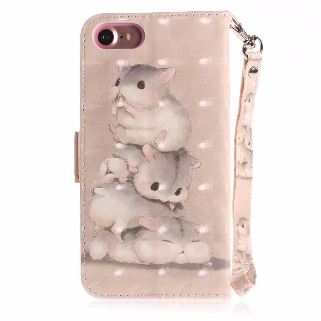 iphone SE3 SE2 (第2世代/第3世代) iphone 8 / 7 ケース 手帳型 おしゃれ 可愛い 3D プリント 絵柄 ストラップ 付き OYIME 派手な色柄 優雅 カバー 横開き マグネット カード収納 耐衝撃 滑り防止 キラキラ スマホケース アィフォン SE 2 SE 3 /アィフォン 7 8 手帳型ケース PUレザー 携帯カバー (ハムスター)
