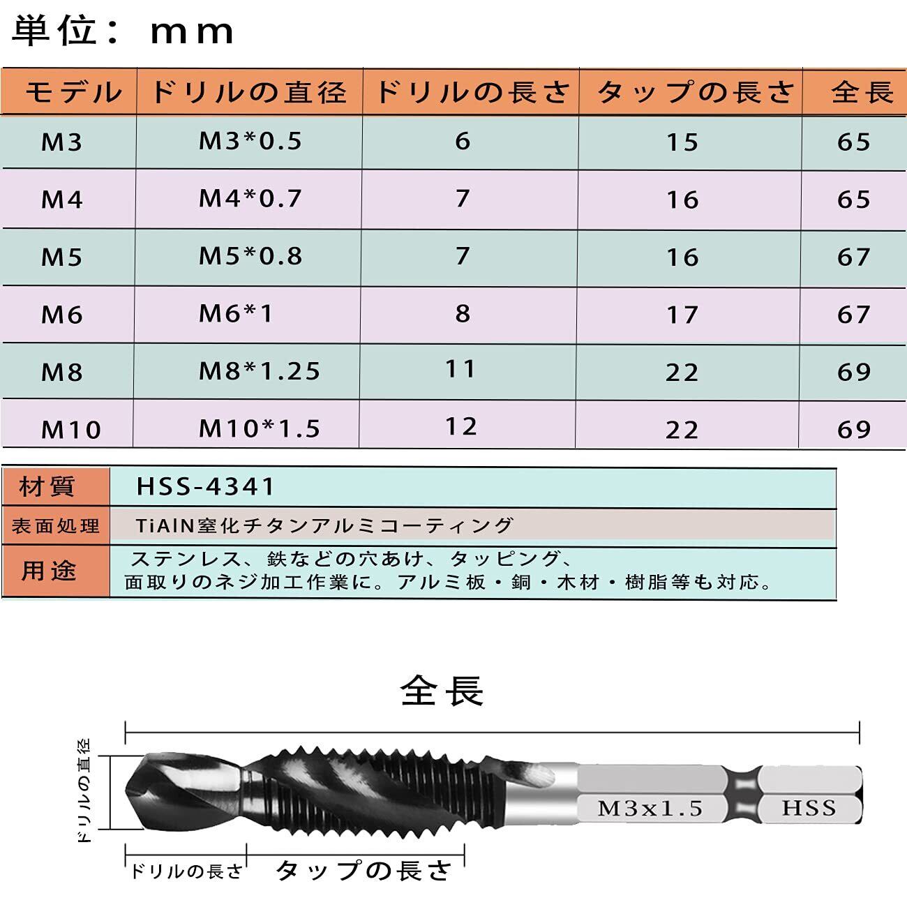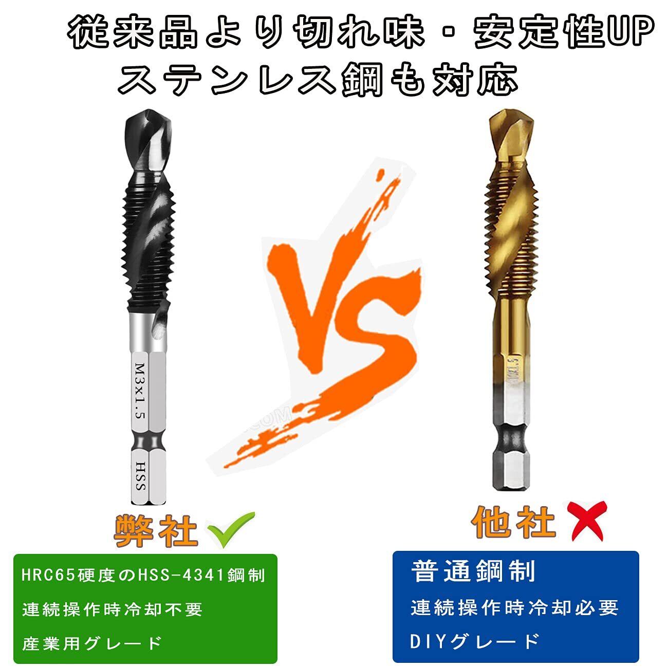 「超硬ドリルタップ登場」ステンレス用 六角軸 ドリルビットセット面取りタップ 穴あけ 鉄工用6本セット