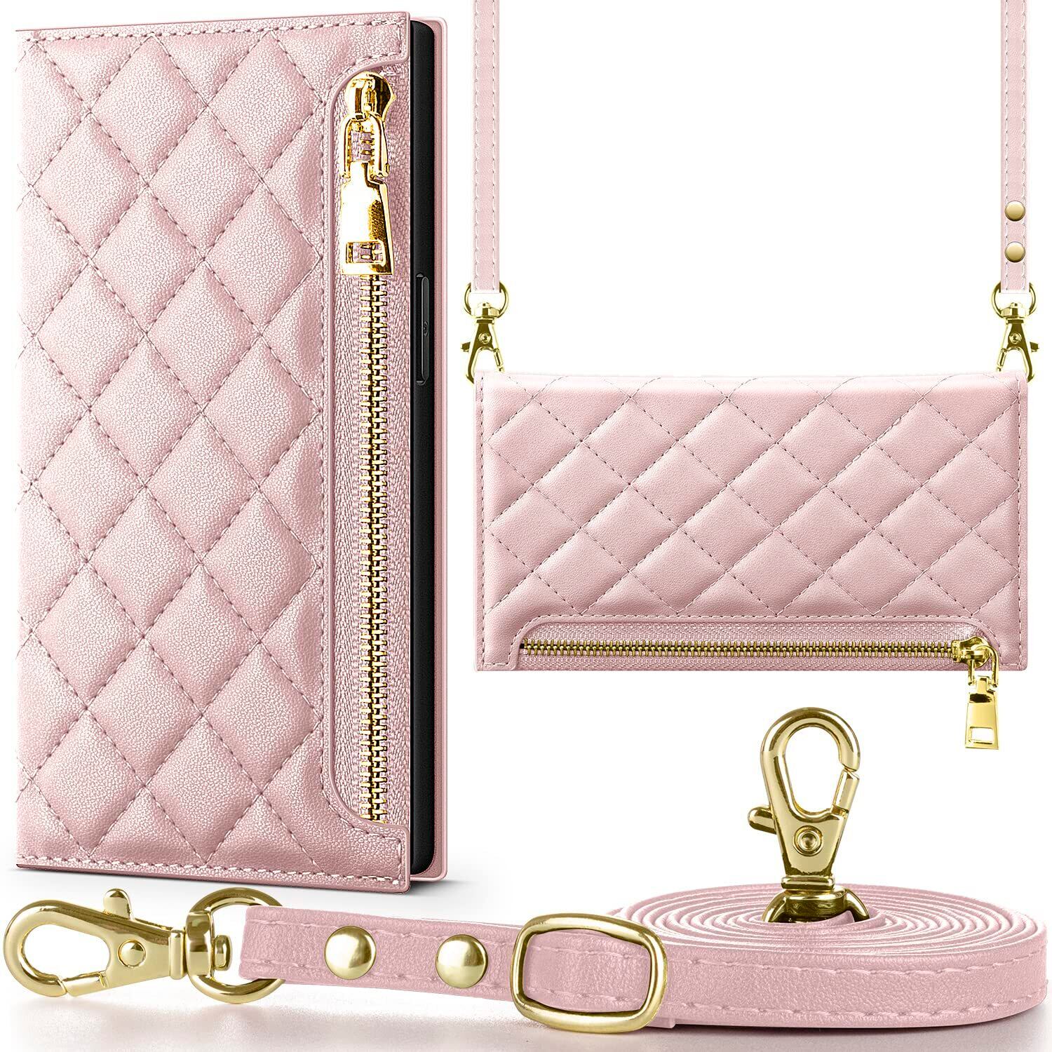 NODALA iPhone 13 Mini ケース 手帳型 ショルダー付き 斜めがけ PUレザー 財布型カバー レディース用 おしゃれ 長さ調整可能 ロングストラップ カード収納 小銭入れ付き スタンド機能 耐衝撃 アイフォン13ミニ対応 ローズゴールド