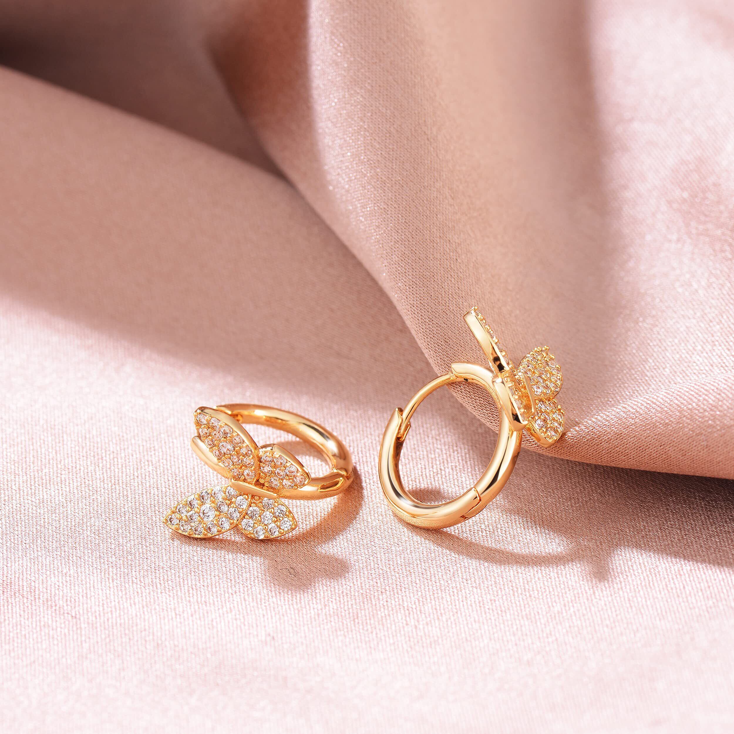Fettero ピアス レディース リングピアス フープピアス アレルギーフリー 金属アレルギー対応 つけっぱなし サージカルステンレス 14k 人気 両耳用 (蝶)