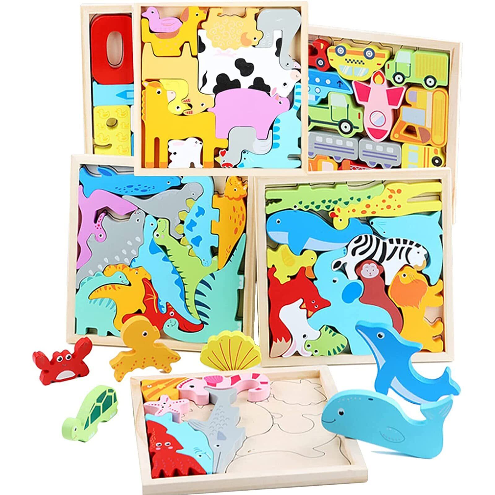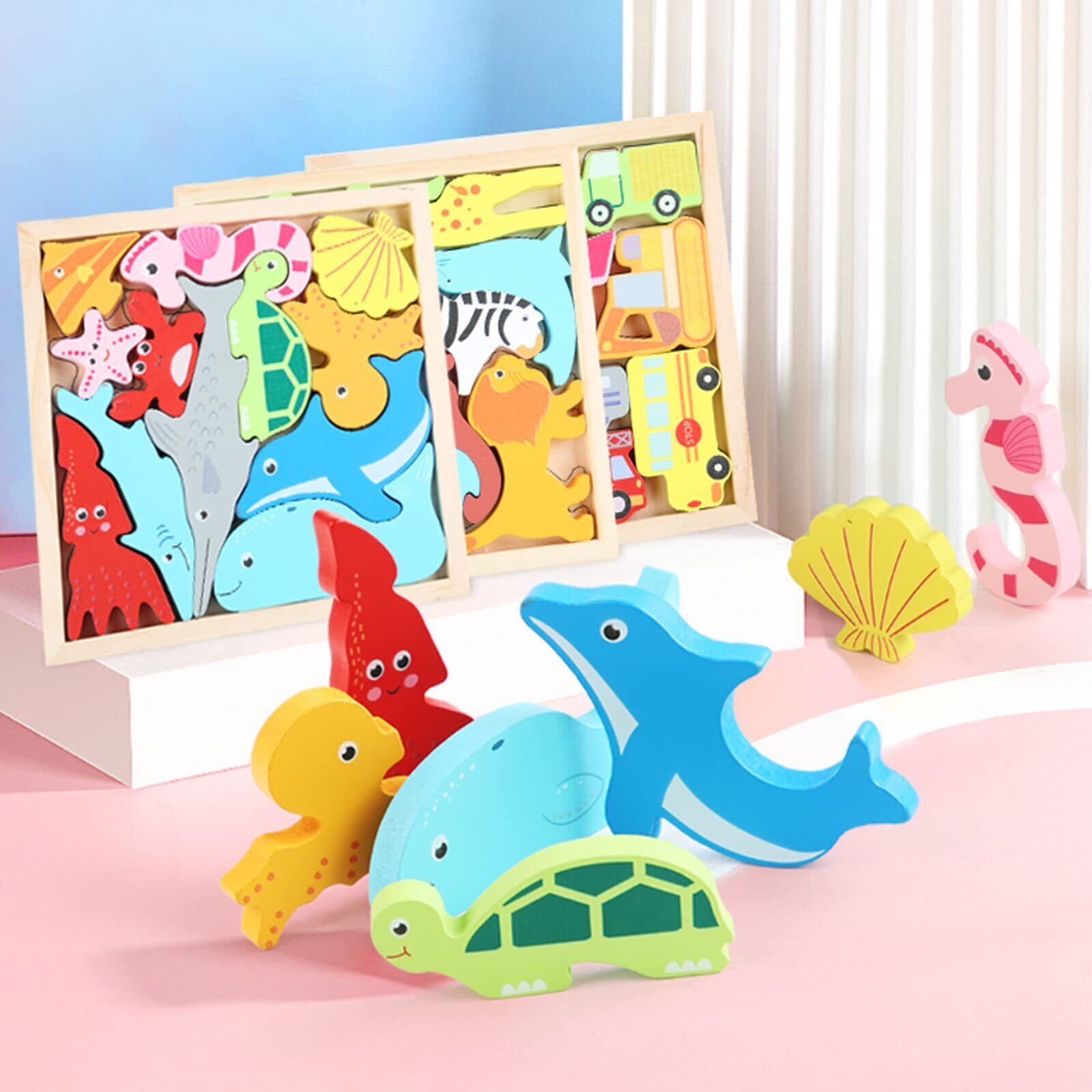 六点セットパズル:このおもちゃパズルセットは型はめタイプのパズルです。数字️、動物園、農場、水族館、乗り物、恐竜を6種類のテーマ含めています。お子様は遊びの同時に様々なもの認識でき、大好きでたまらないパズルです。