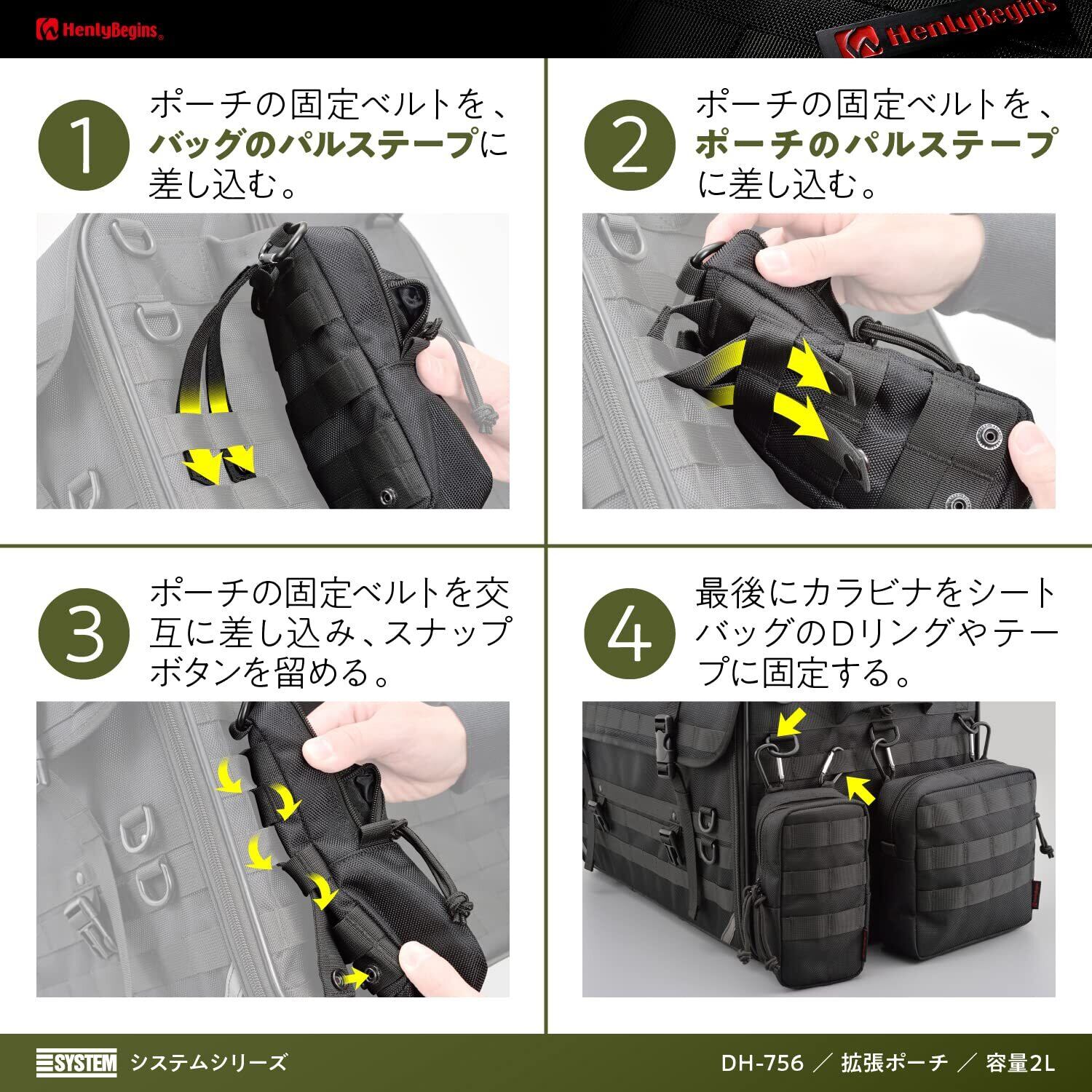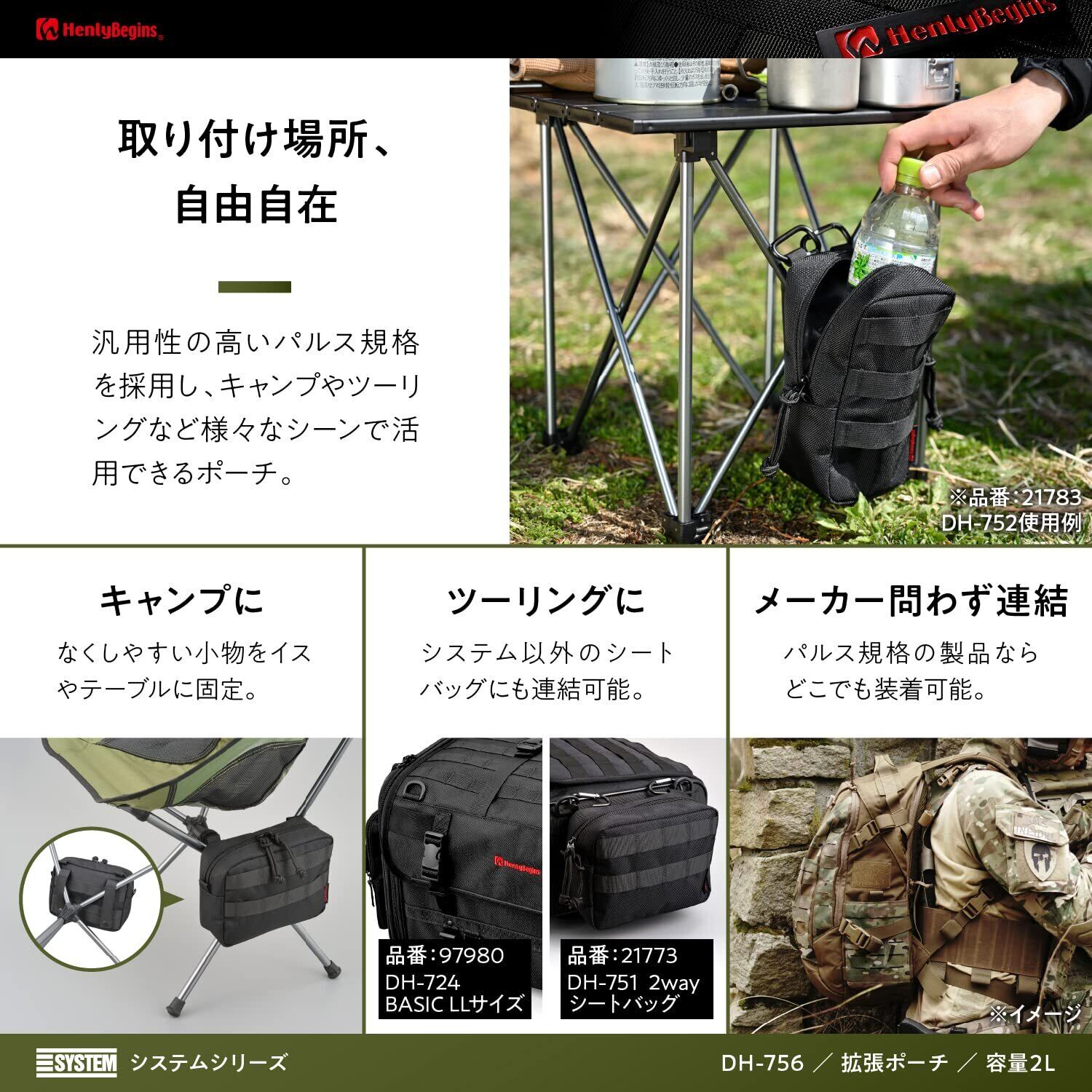 【仕様1】別売のキャンプシートバッグDH-750と本品を自由に組み合わせて使用できる、新感覚のカスタマイズシステムバッグ