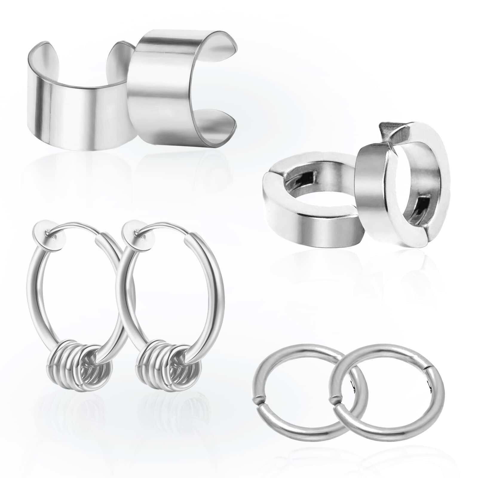 イヤーカフ イヤリング メンズ フェイクピアス ノンホールピアス レディース 人気 earrings for men and women 両耳用 サージカルステンレス316L 金属アレルギー対応 シルバー ブラック ゴールド (4セット シルバーイヤリング)