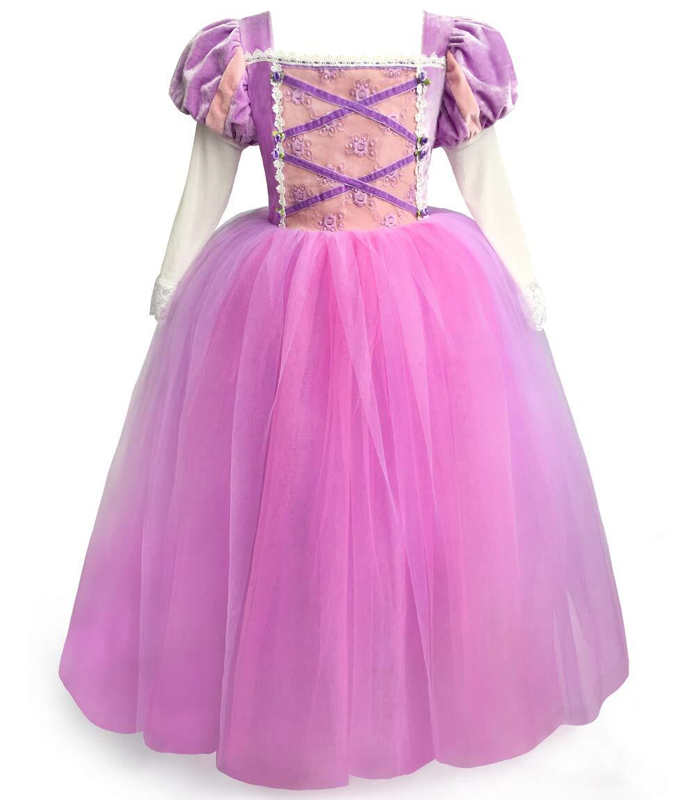 [Axaxa] プリンセスドレス 子供 衣装 コスプレ(髪長姫ドレス+ティアラなど) 7点セット 100-140cm キッズコスチューム ワンピース イベント 舞台服 クリスマス ハロウィン 変装 誕生日 演出 仮装 プレゼント (100, ラプンツェル)