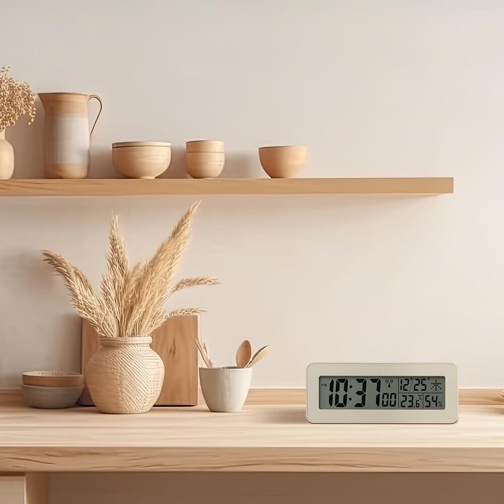 【便利な温湿度表示】温度・湿度の表示付きなので、いつでもお部屋の状態がわかります。時刻の確認とあわせて温湿度をチェックすることで、快適な空間の維持に役立ちます。