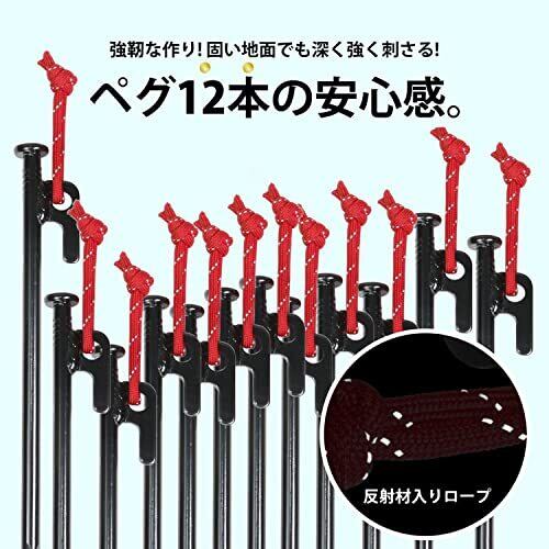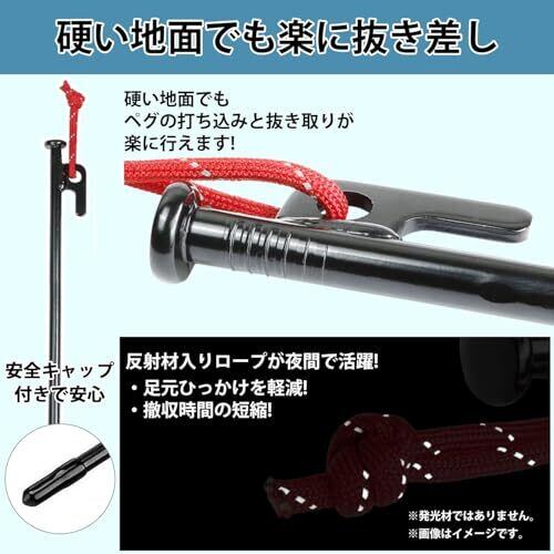 RiveRock(リバロック) 20cm ペグ 収納 バック テント タープ スチールペグ 反射ロープ 安全キャップ付き (20cm 12本/収納バック)