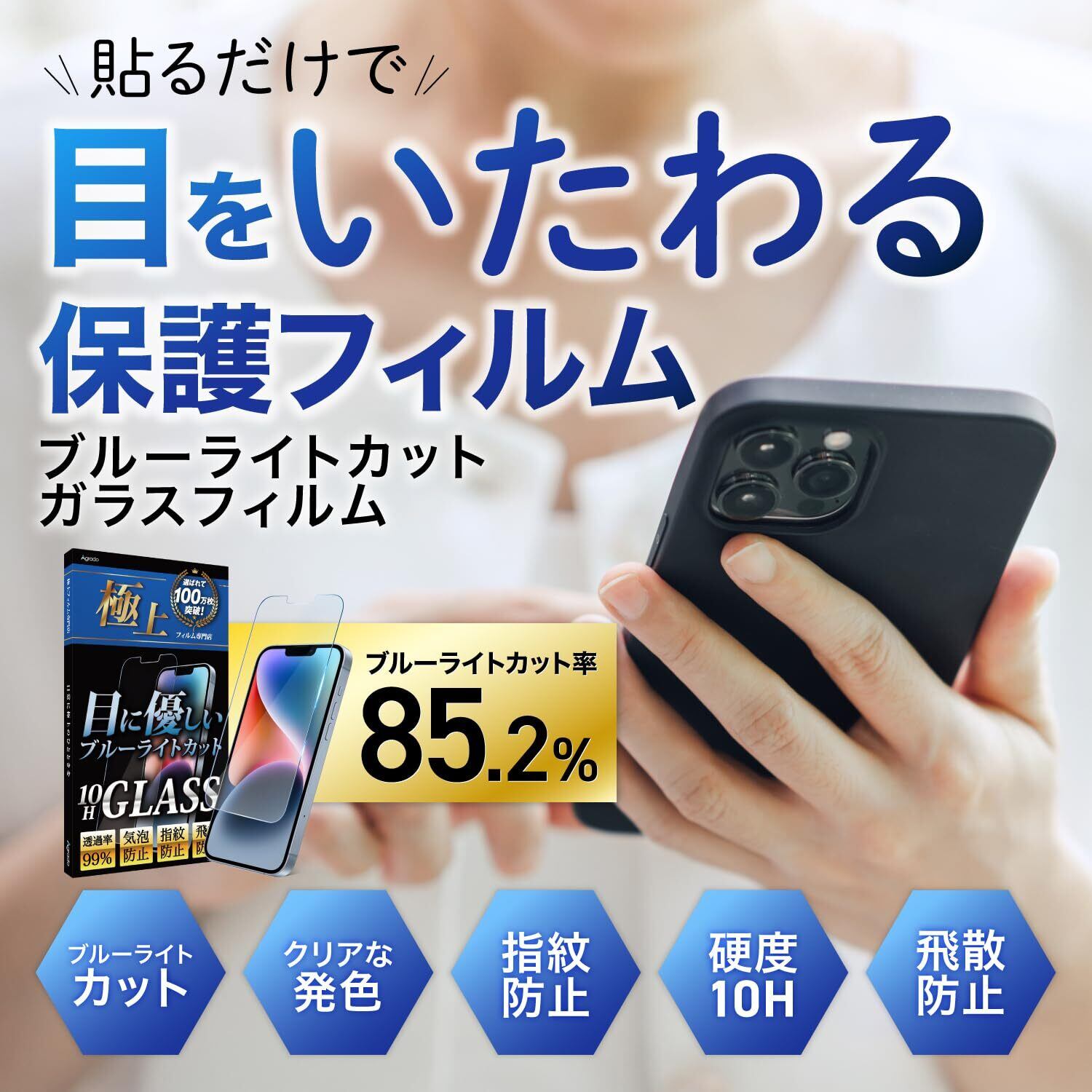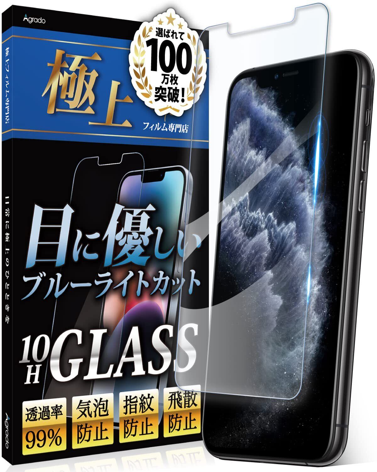 Agrado ガラスフィルム iPhone11 Pro iPhoneX 用 ブルーライトカット いpほね11pro フィルム iPhoneXs 用 10H 強化ガラス