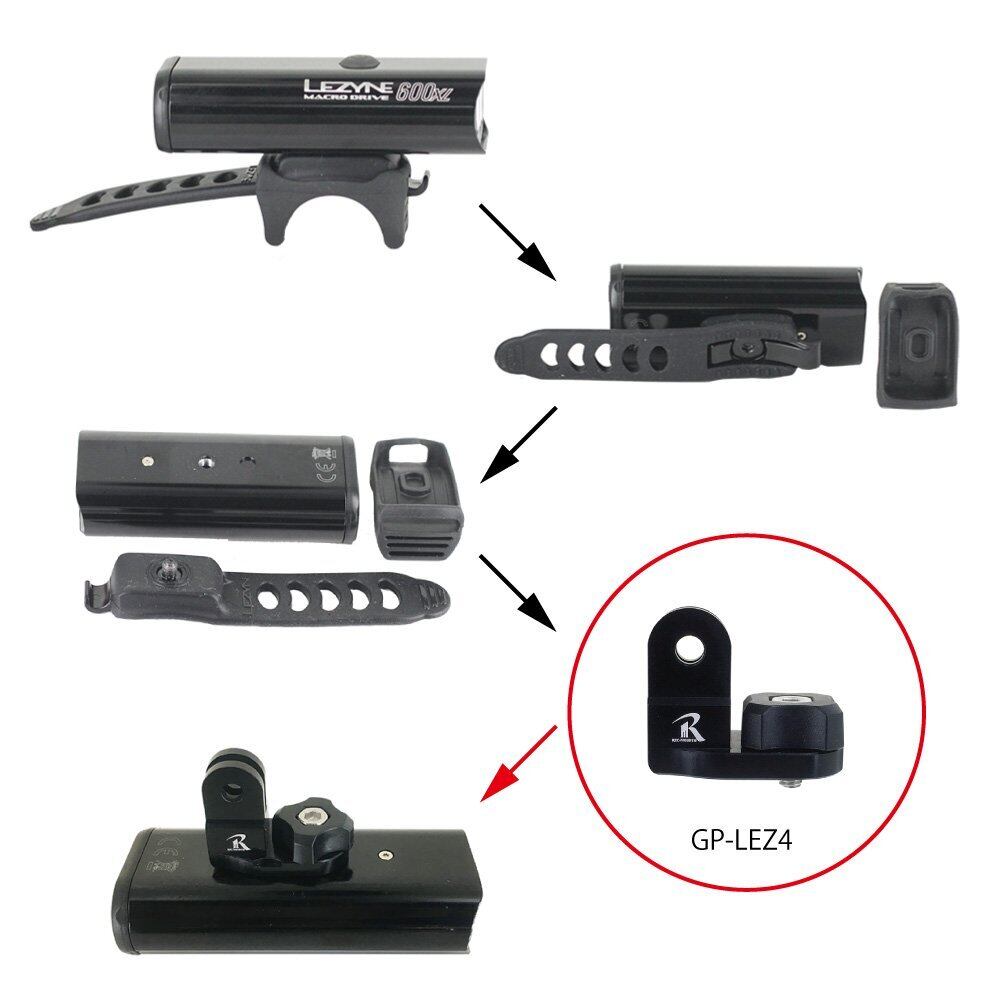 [レックマウント]ライトアダプター LEZYNE(レザイン) 用 タイプ4 【GP-LEZ4】(ゴープロインターフェイス→レザインへ変換)アルミ製 2枚目画像通りに脱着可能なライト用(ネジピッチM5×0.8)