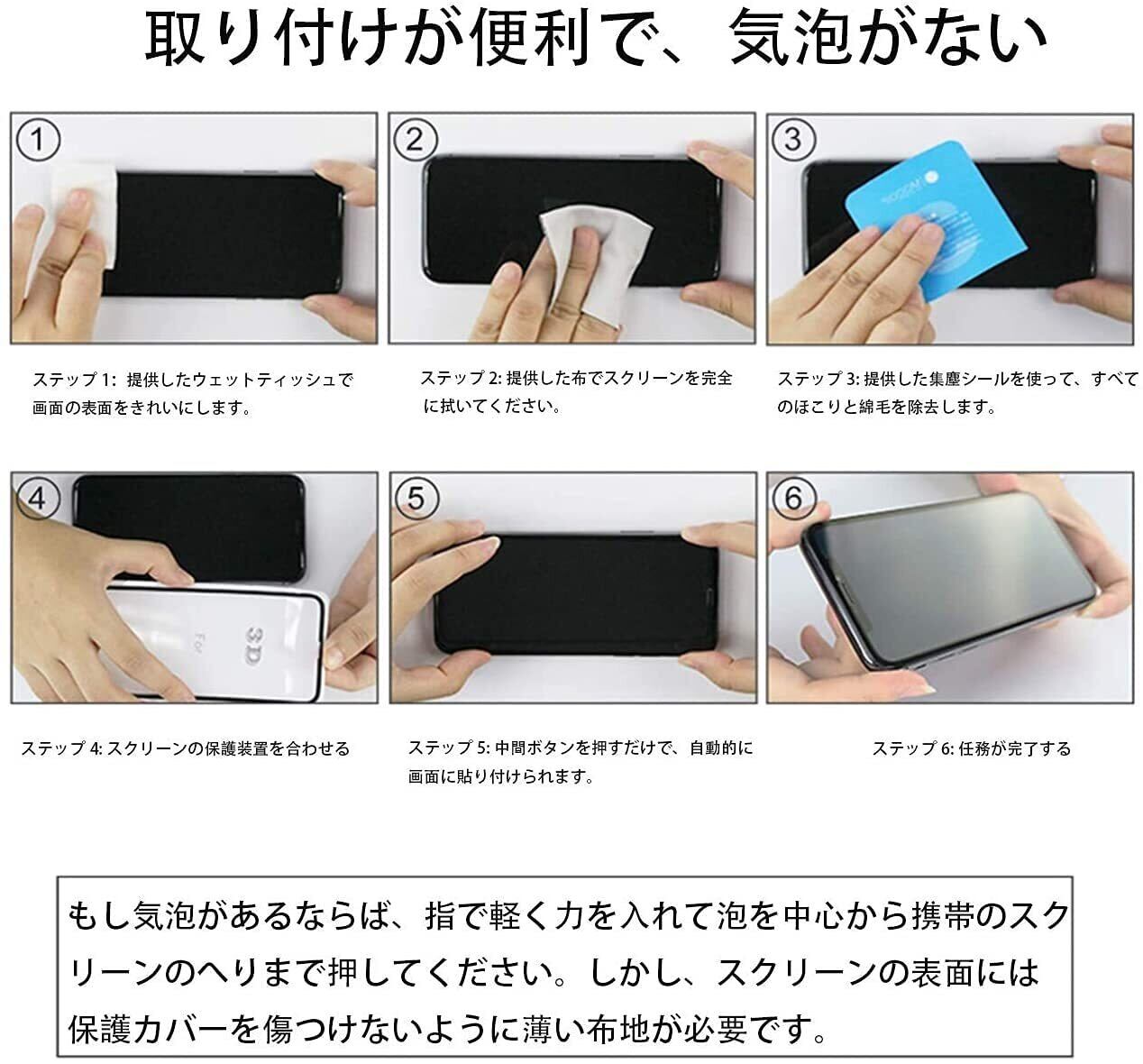 【簡単貼り付け】保護フィルムの接着面は特殊な自動吸着層を使用しているので、ガラスを液晶に置くだけで自然に吸着し、気泡が出来にくいので、 誰でも簡単、綺麗に貼ることができます。