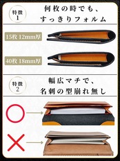 【 名刺 が型崩れしない幅広マチ 】メインのポケットは、通常の 名刺ケース よりも幅広くマチをとってありますので、名刺 の折れ曲がりや型崩れを防止できます。またサブポケットには、 クレジットカード や ICカード も収納できます。
