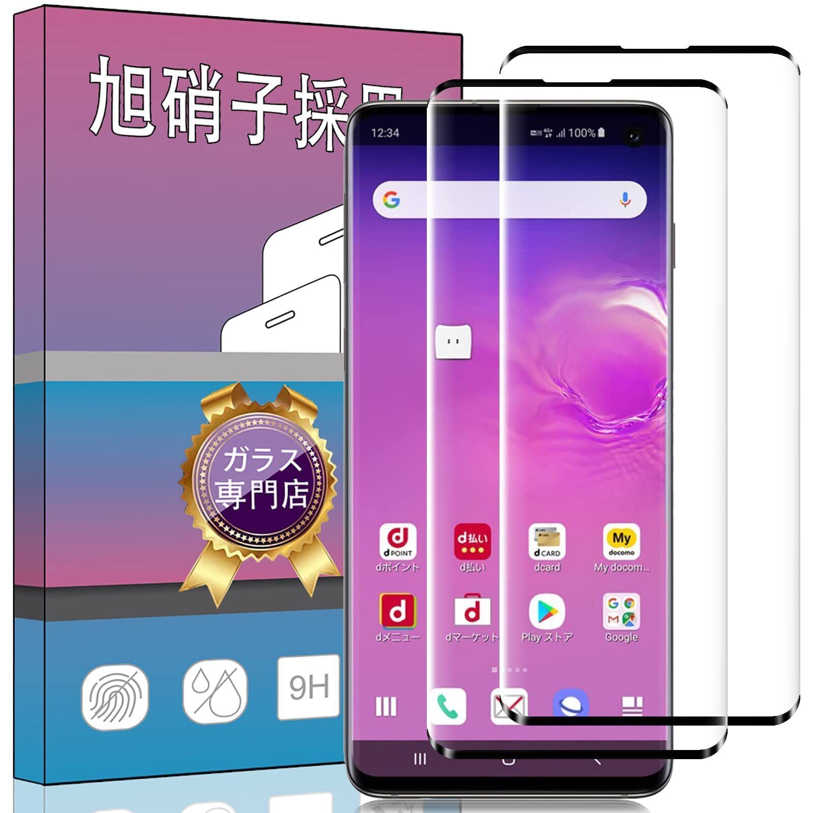 【2枚セット】対応 Galaxy S10 SCV41 / SC-03L ガラスフィルム 強化ガラス 液晶保護フィルム 日本製素材旭硝子製 3D曲面加工 硬度9H 指紋防止 衝撃吸収 気泡ゼロ 高透過率 防爆裂 スクラッチ防止 対応 SCV41 / SC-03L フィルム(ブラック)PCduoduo