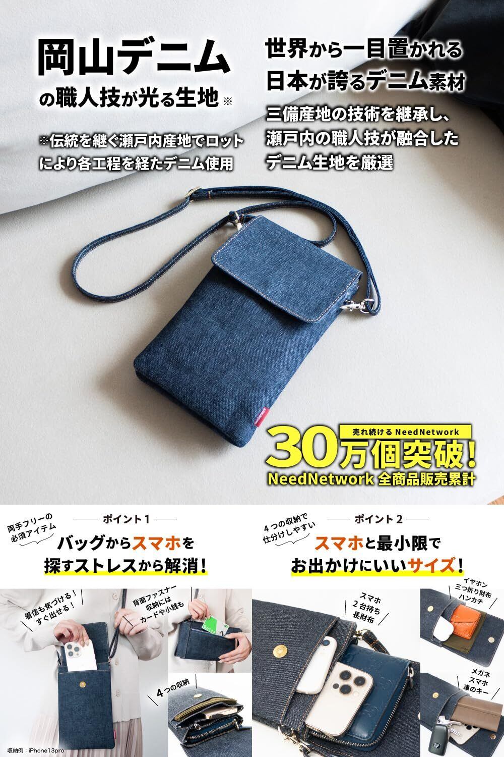[ニードネットワーク] スマホポーチ スマホショルダー 岡山デニム レディース 斜め掛け スマホポシェット インディゴブルー