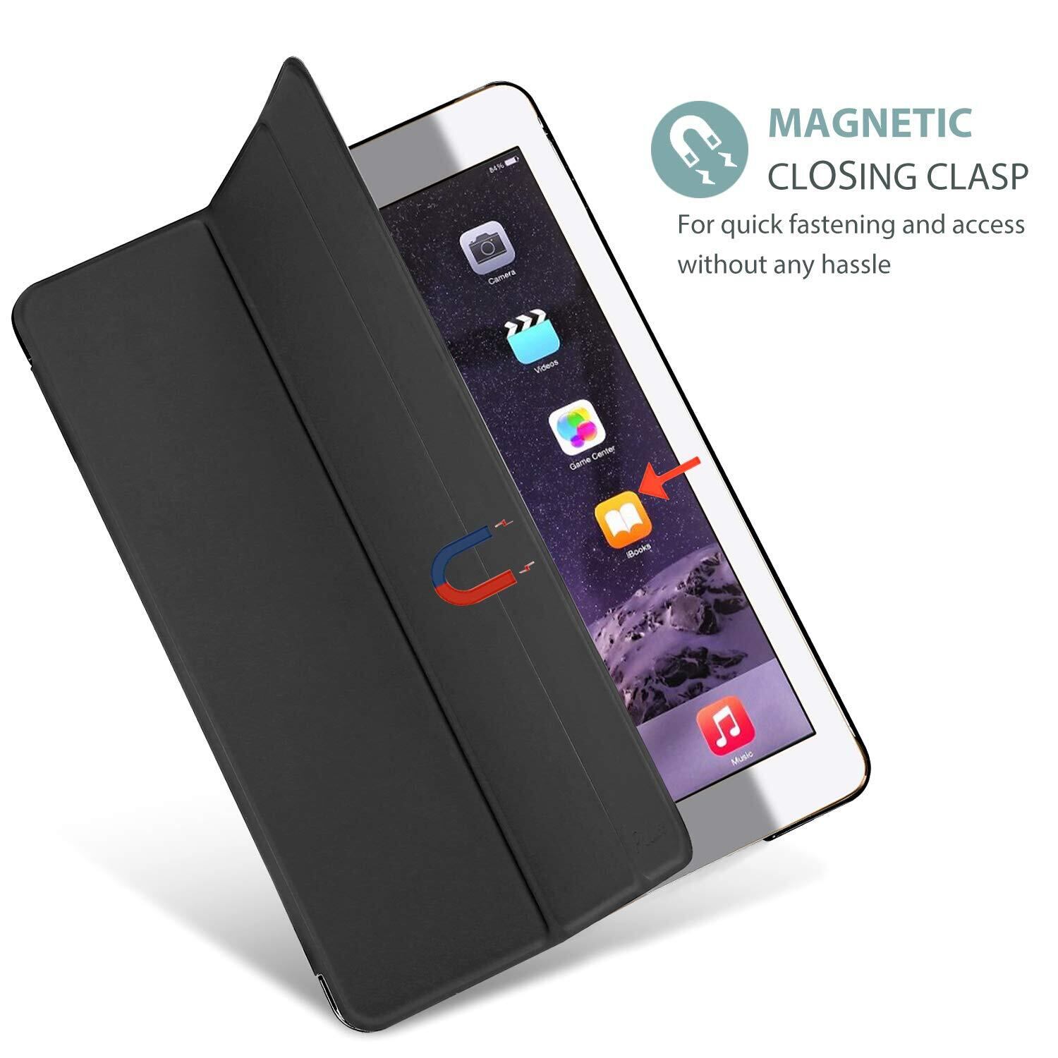 ProCase iPad Air 2(2014発売)ケース スマート 超スリム スタンド フォリオ保護ケース 半透明フロスト バックカバー 対応端末:Apple iPad Air 9.7" 第2世代(A1566 A1567)-ブラック