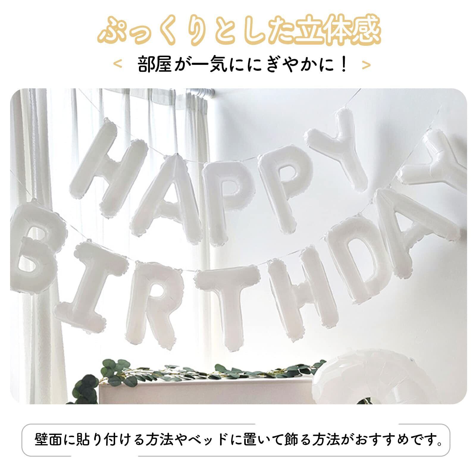 Iysoll 誕生日 飾り付け HAPPY BIRTHDAY バルーン 16インチ 誕生日ガーランド シンプル 風船 バースデー 文字 ガーランド ホワイト