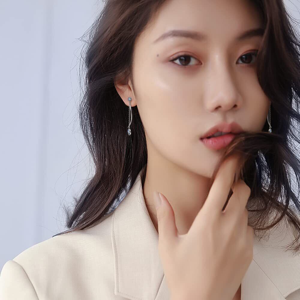 11月の誕生石:美しいトパストーンのピアスは、シンプルだけど長いシルエットなので、揺れるジルコニアが魅力的な光沢を放ち、動くたびに揺れるので華やかな印象を与えます