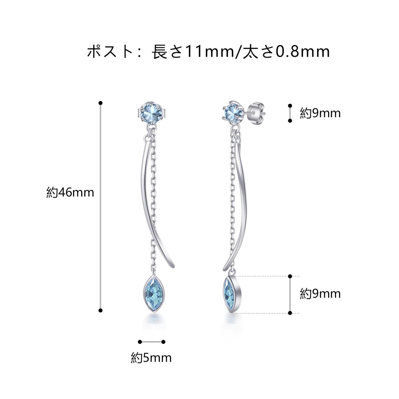 商品の詳細: ぴあすサイズ:46 mm*5 mm。ポスト:長さ約11 mm/太さ約0.8 mm。素材:トパーズ。付属品:専用磨きクロス、精美な包装ケース、高級ベロア調ポーチ、シルバー925キャッチ、シリコンキャッチ