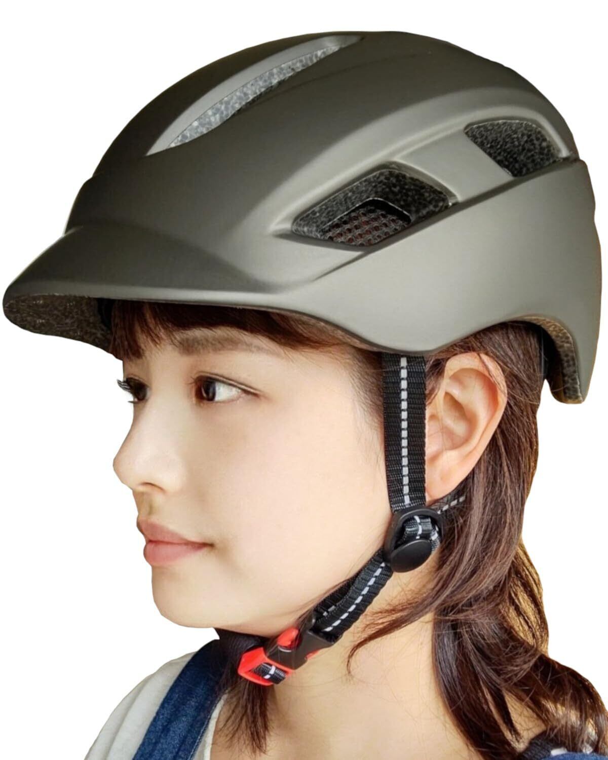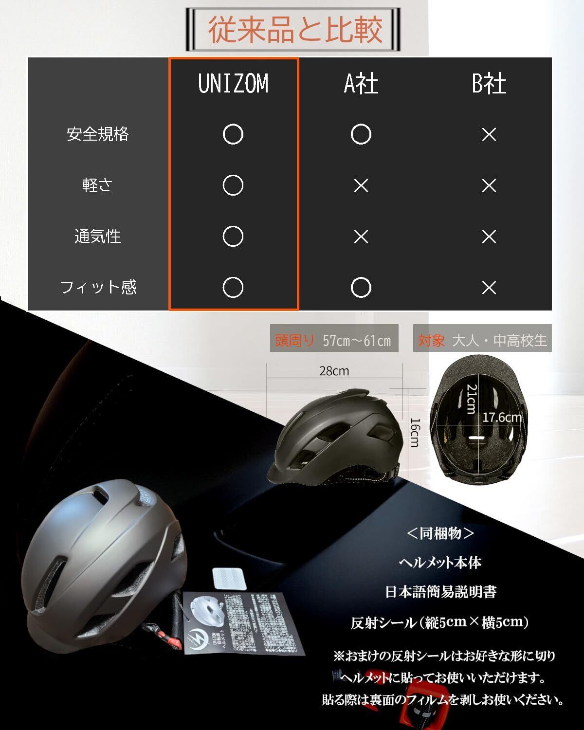 【夜間も使用可能】あご紐に一部反射素材を使用し車のライトの光などに反射します。また、おまけの反射シールはお好きな形に切ってお好きな場所にお貼り頂けます。