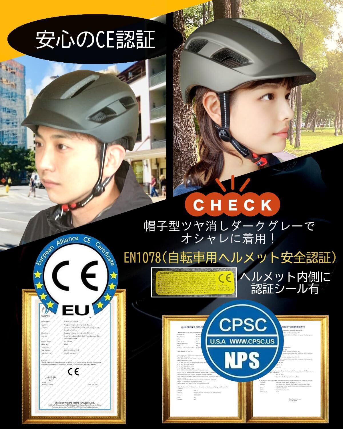 【CE認証】ヨーロッパの厳しい安全基準CE認証をクリアしたヘルメットです。