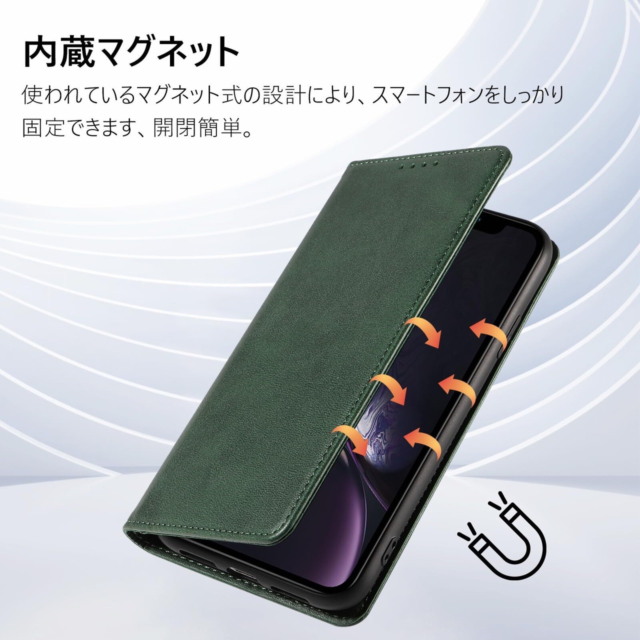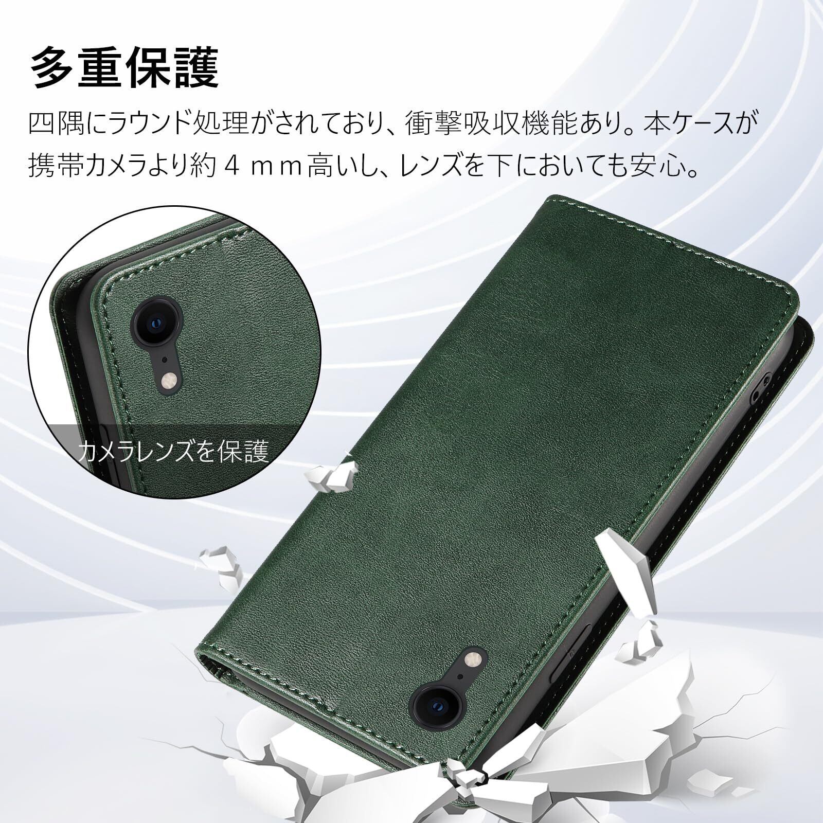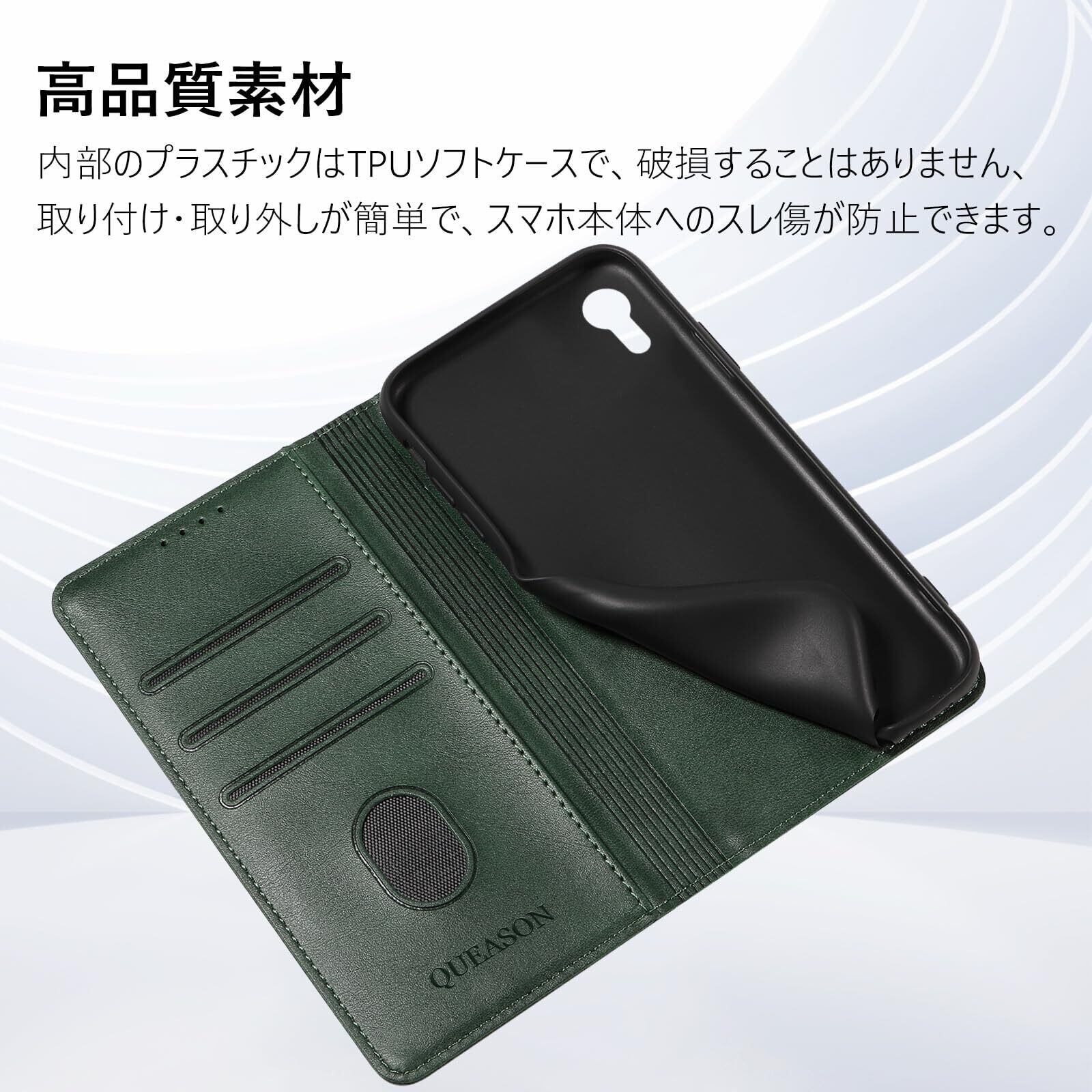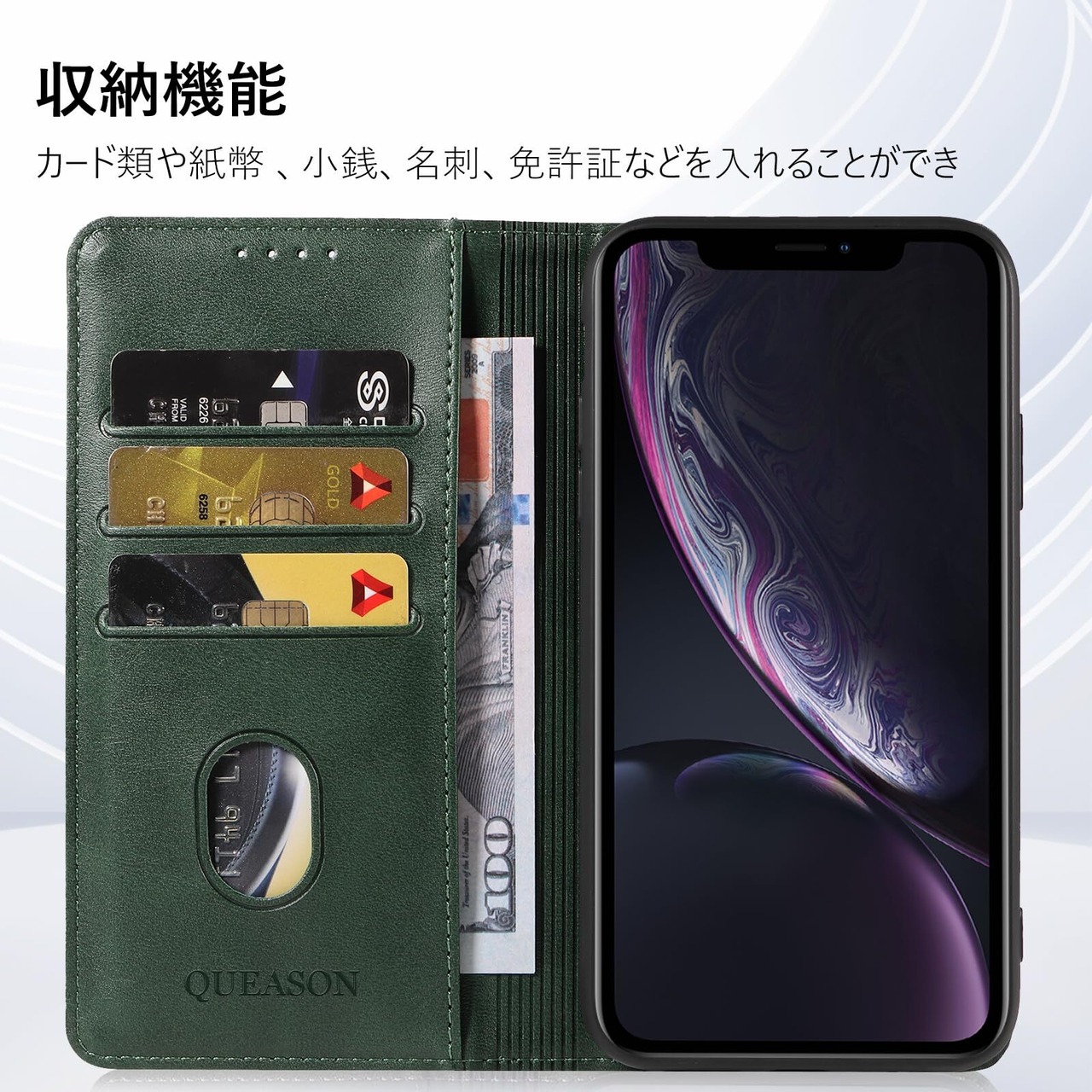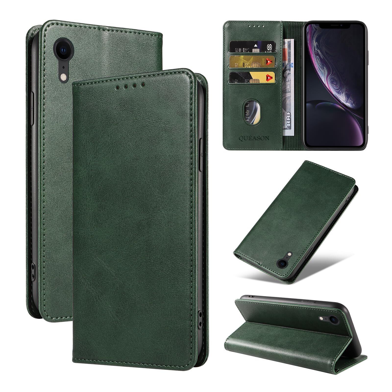 QUEASON 互換品 スマホケース【iPhone xr 用 ケース 手帳型】マグネット式 iphonexr 用 スマホケース 携帯カバー iphone xr 用 ケース カード収納 アイホンxr 用 ケース スタンド機能 iphonexr 用 手帳型ケース 耐衝撃 全面保護 iphone 10rケース 手帳型 落下防止 防塵(グリーン)