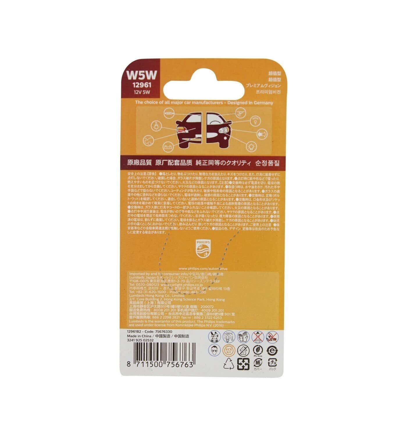 Philips(フィリップス) ポジションランプ T10(W5W) 12V 5W プレミアムヴィジョン ライセンスランプ ルームランプ 補修用 輸入車対応 2個入り 車検対応 PHILIPS PremiumVision 12961B2