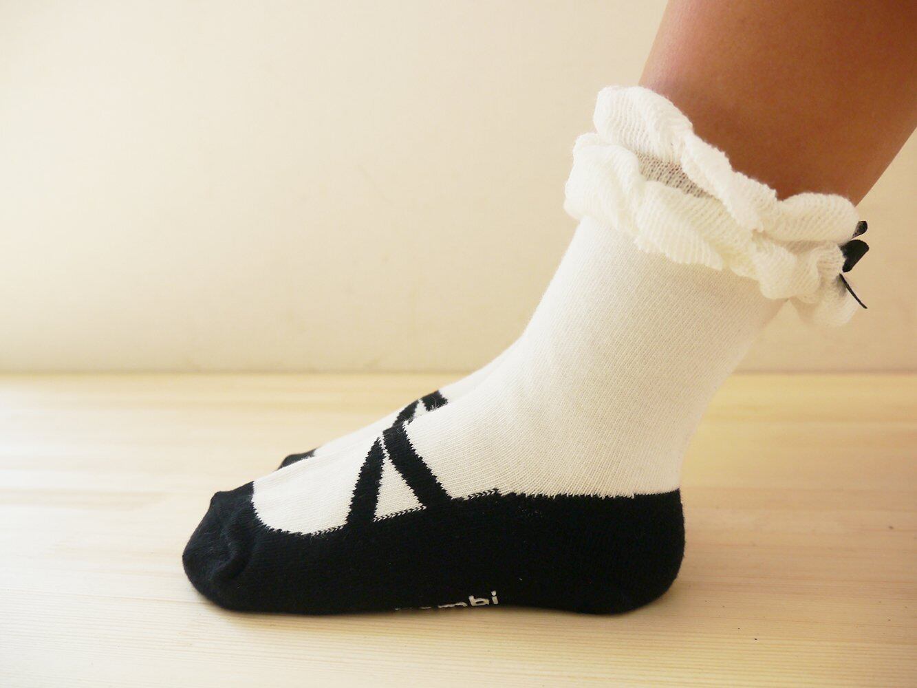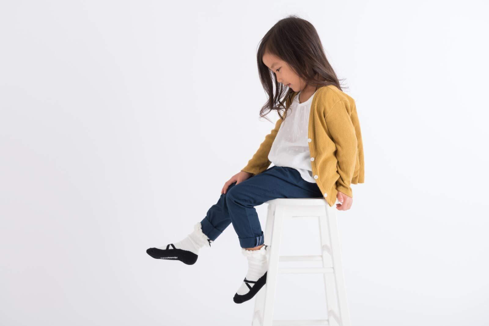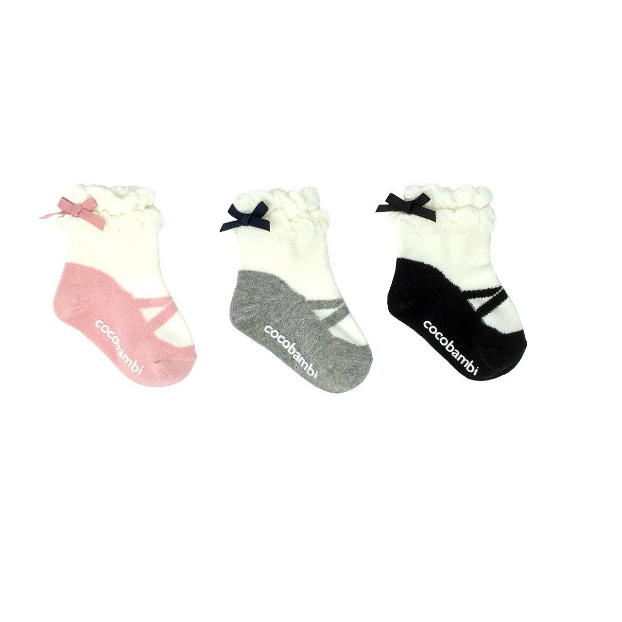 Filloie フィロワ 3足組ベビー靴下クルー丈 バレエシューズ フェイク柄 リボン付 スベリ止め付 9cm - 14cm