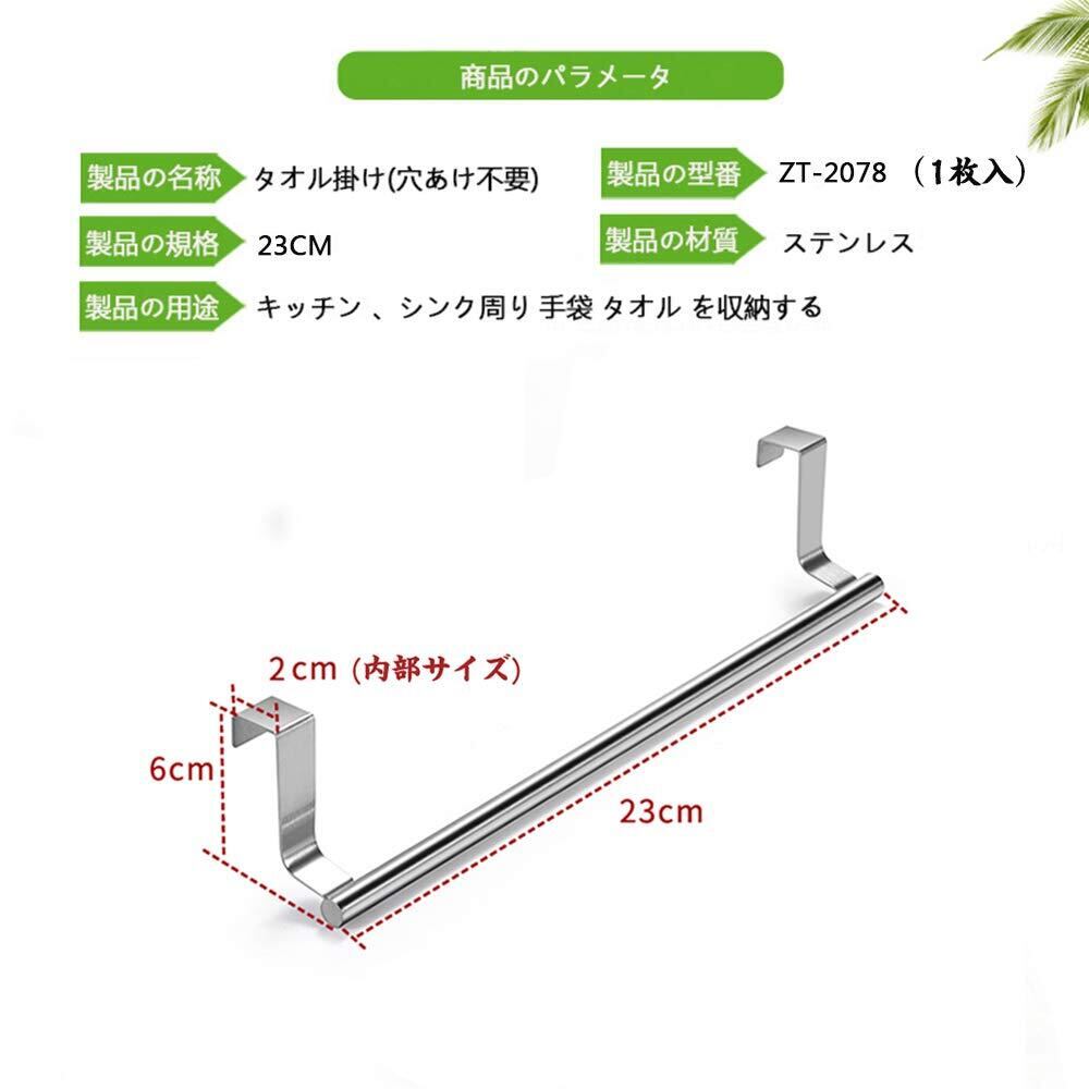 Sycy タオルバー タオル掛け 収納ラック トステンレス 穴あけ不要 キッチン シンク周り 手袋 タオル を収納する キッチン用タオルかけ キッチン収納 (23cm)