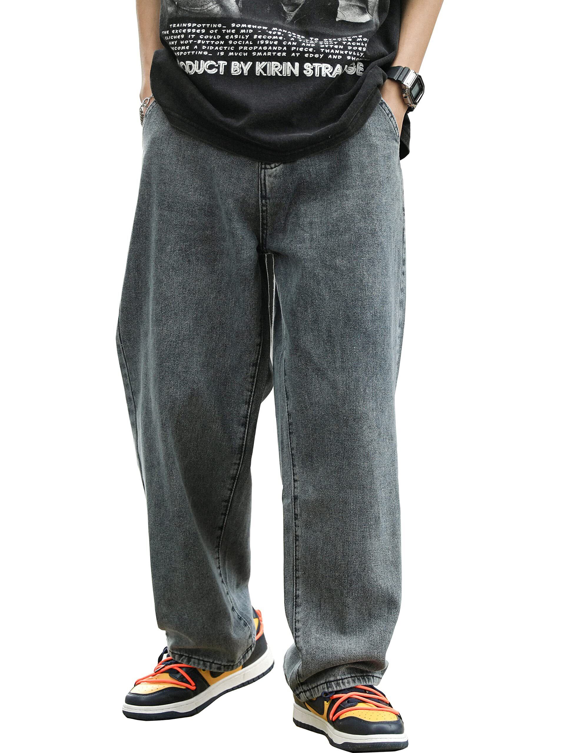 [eternal cycle] エターナル サイクル ワイドデニム デニムパンツ ジーンズ メンズ デニム パンツ ゆったり ルーズシルエット ワイド ジーパン バギー バギーパンツ カジュアル EC-004 (M グレー)