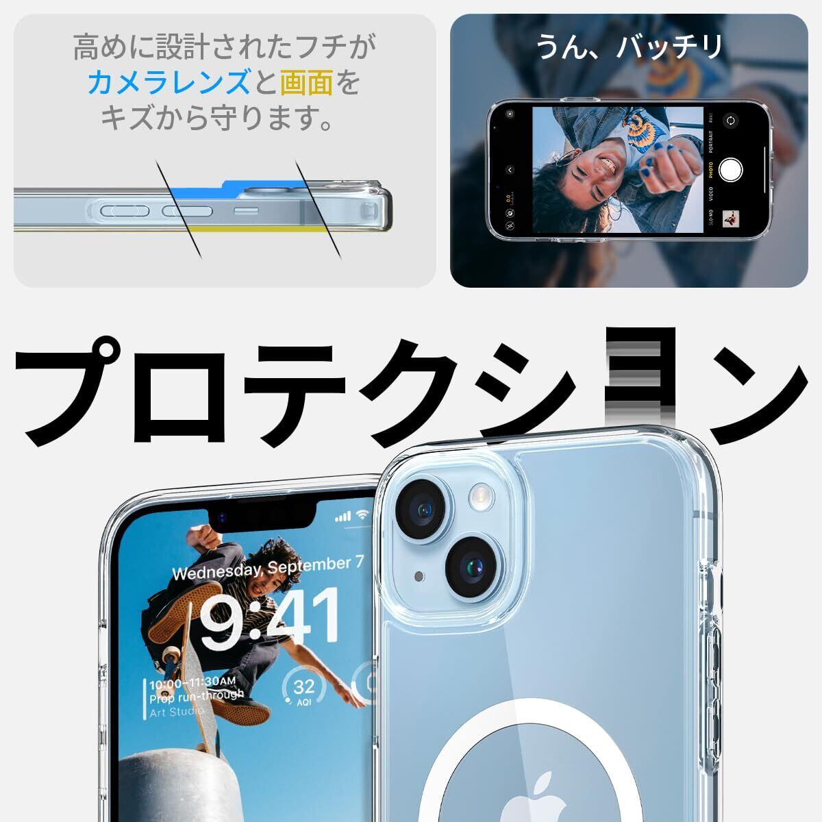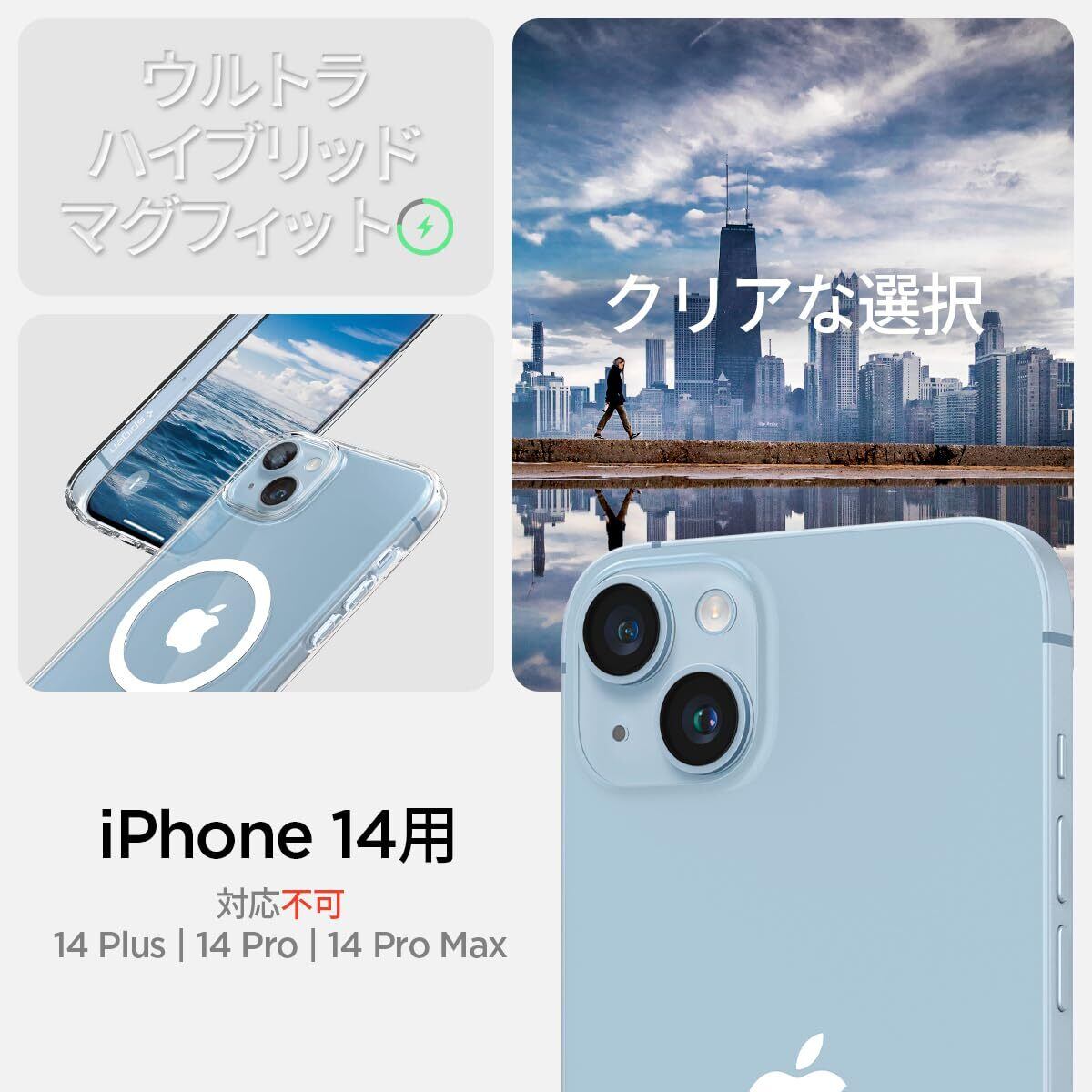 Spigen iPhone14 ケース MagSafe クリア 耐衝撃 米軍MIL規格取得 マグネット搭載 黄変抑制 2重構造 すり傷防止 マグセーフ 適用カバー ワイヤレス充電対応 ウルトラ・ハイブリッド マグフィット ACS05048 (ホワイト)