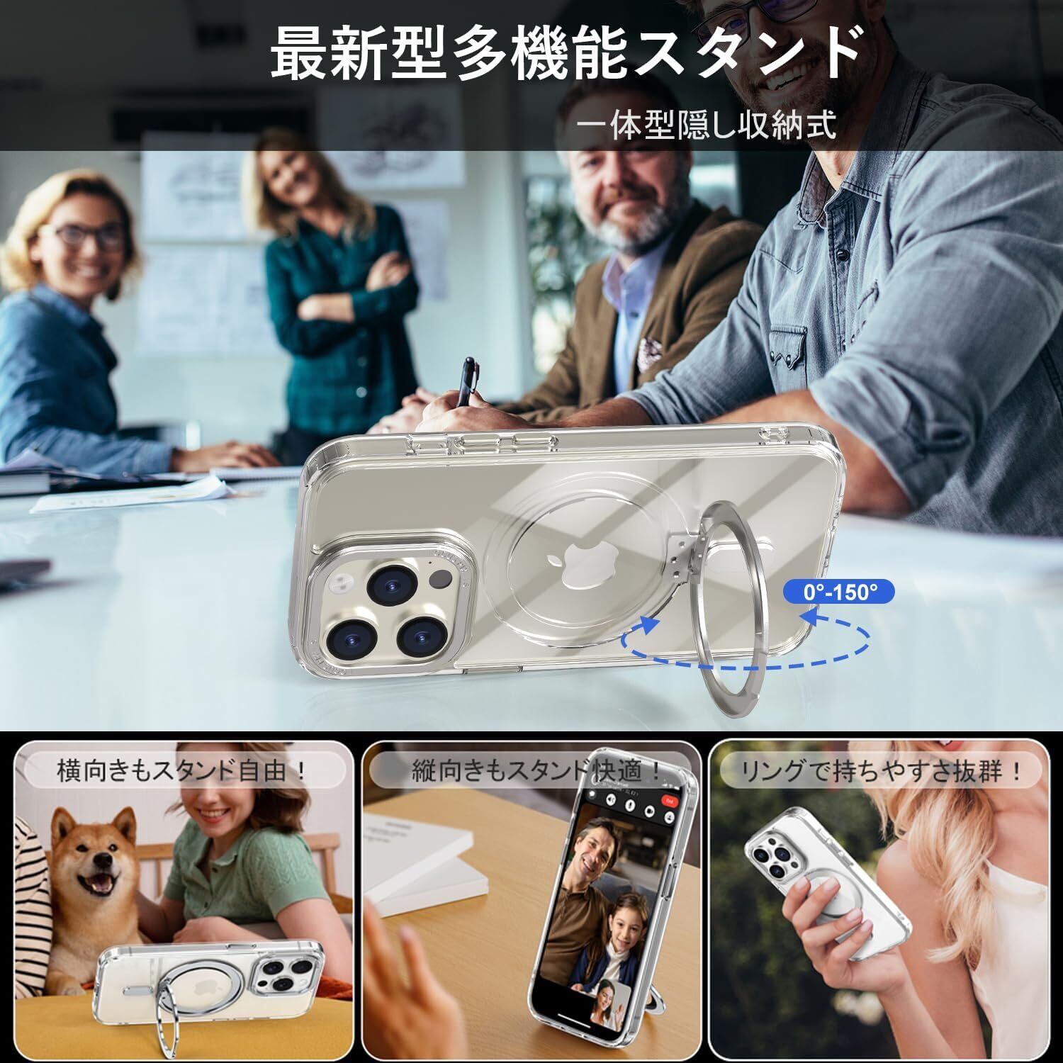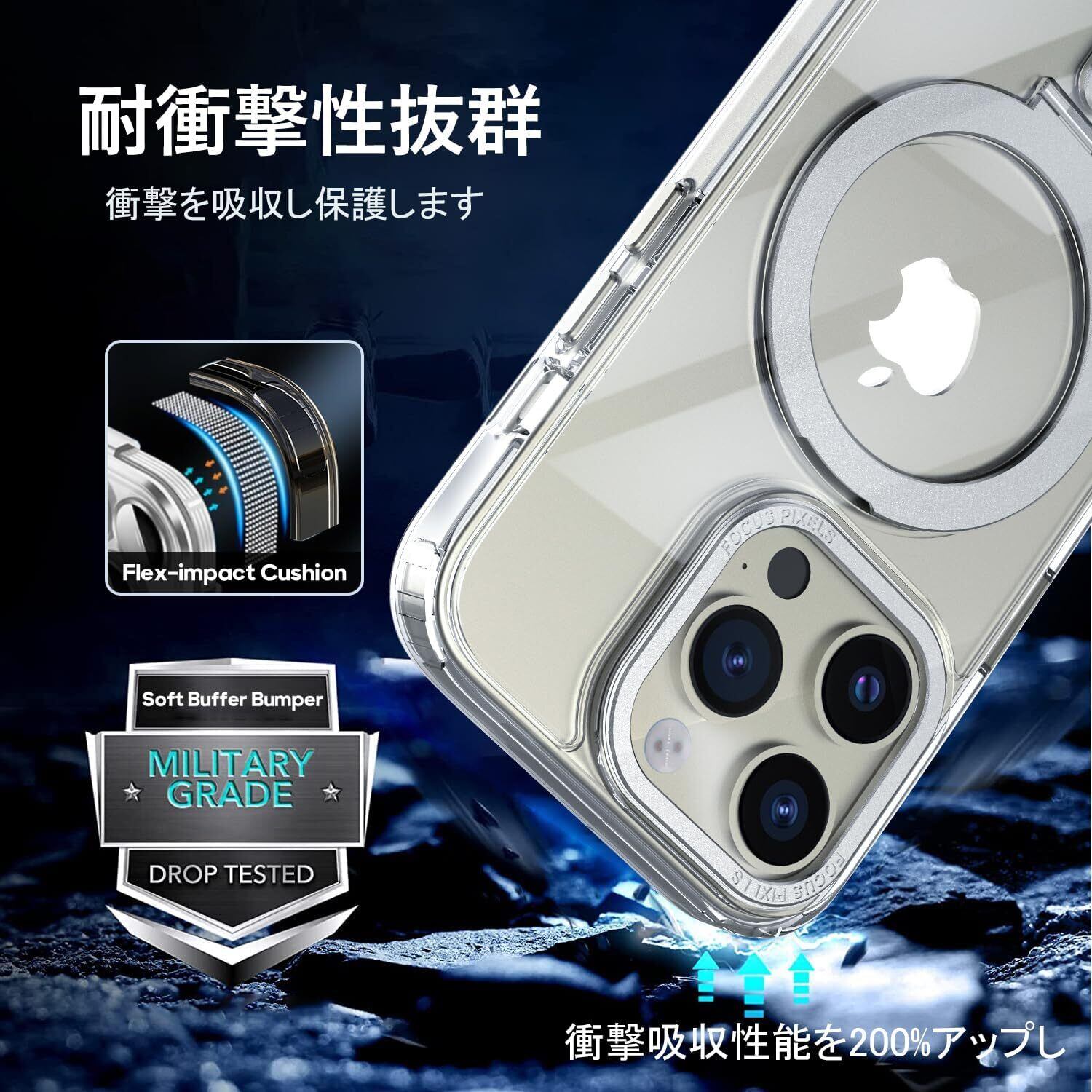 iPhone 14 Pro Max 用 ケース MagSafe対応 アイフォン14 プロ マックス スタンド機能 OURJOY スマホケース 米軍規格取得 耐衝撃 カメラレンズ保護 あいほん14 Pro Max 半透明 携帯ケース ワイアレス充電 ストラップホール付き • クリア