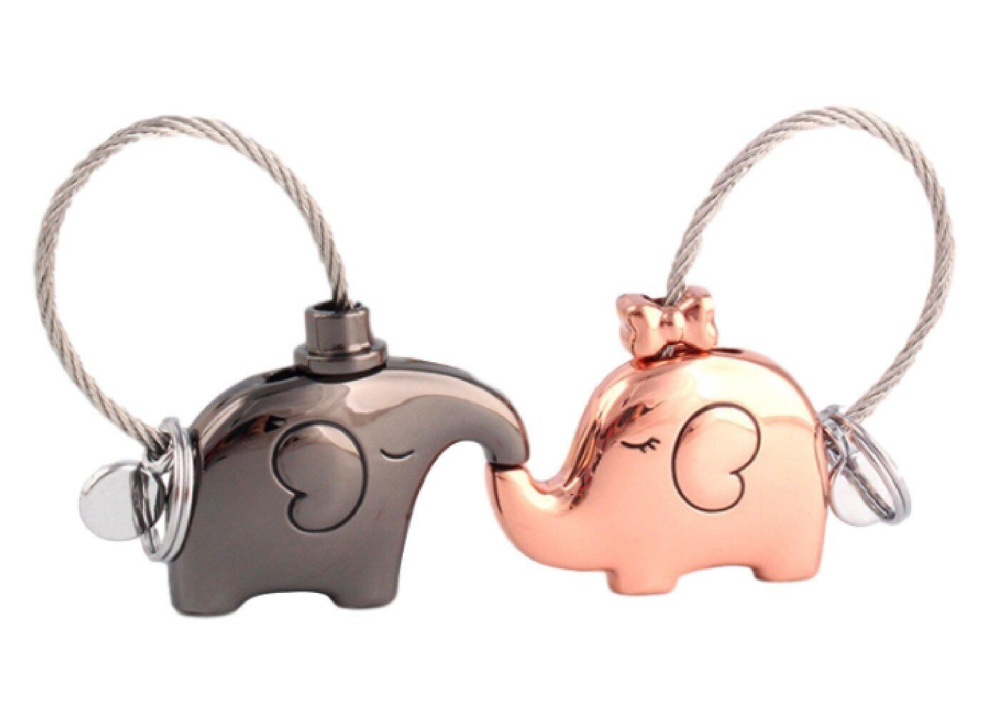 KLU ペア キーホルダー カップル お揃い キーリング 鍵 かわいい 動物 ブラック ピンクゴールド 2個セット (ゾウ)