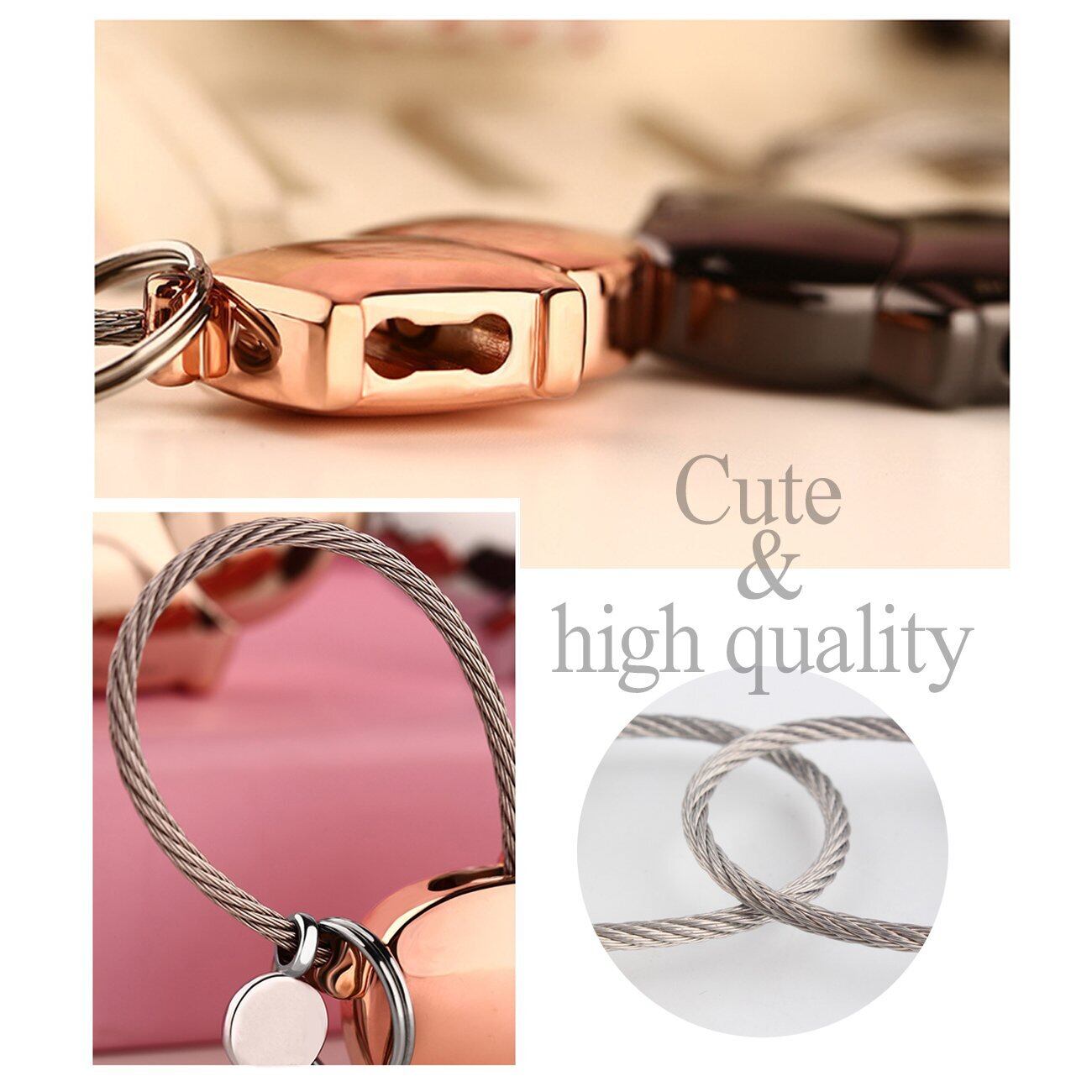 KLU ペア キーホルダー カップル お揃い キーリング 鍵 かわいい 動物 ブラック ピンクゴールド 2個セット
