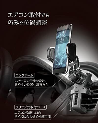 見やすい位置に調整自在、エアコン吹き出し口取付タイプスマートフォンホルダー