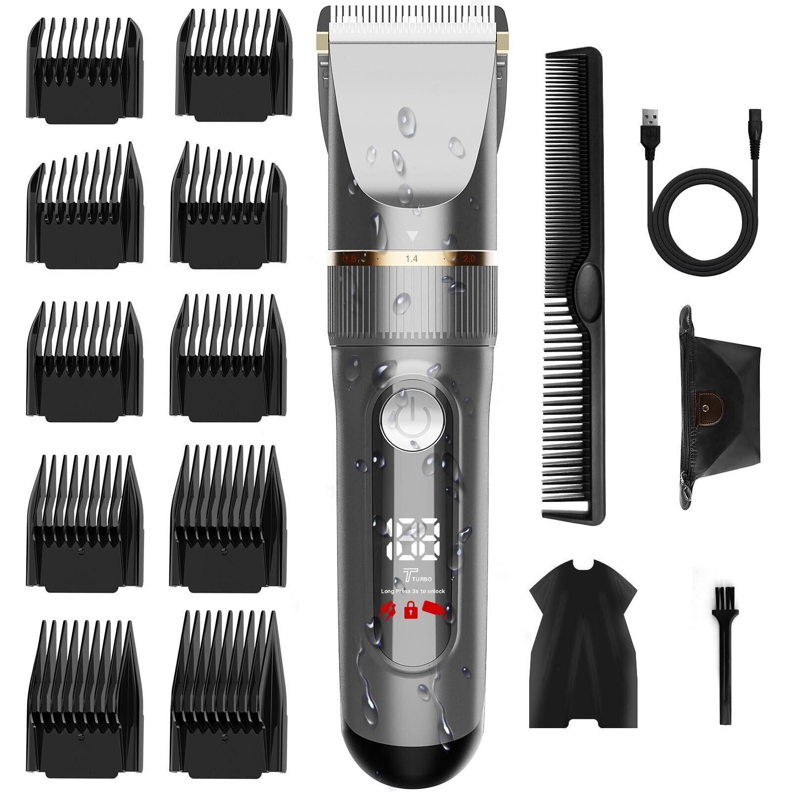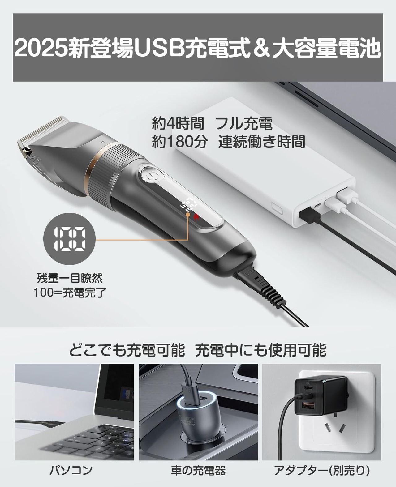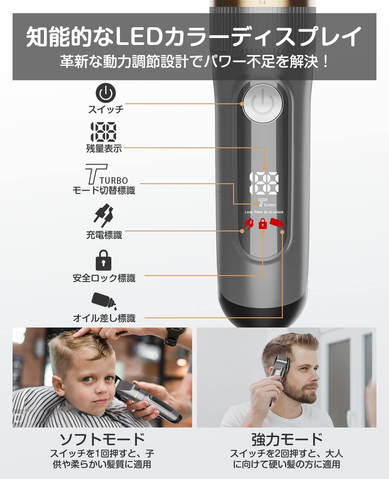 バリカン【2025新登場 USB充電式】ヘアカッター メンズ 電動ばりかん 散髪用 自動研磨 プロ仕様 0.8-26mm対応 LEDディスプレイ 2段階モード 全身防水 家庭用 業務用 子供用 セルフカット 低騒音 水洗い可 リミットコーム 散髪ケープ 収納袋付き 日本語説明書