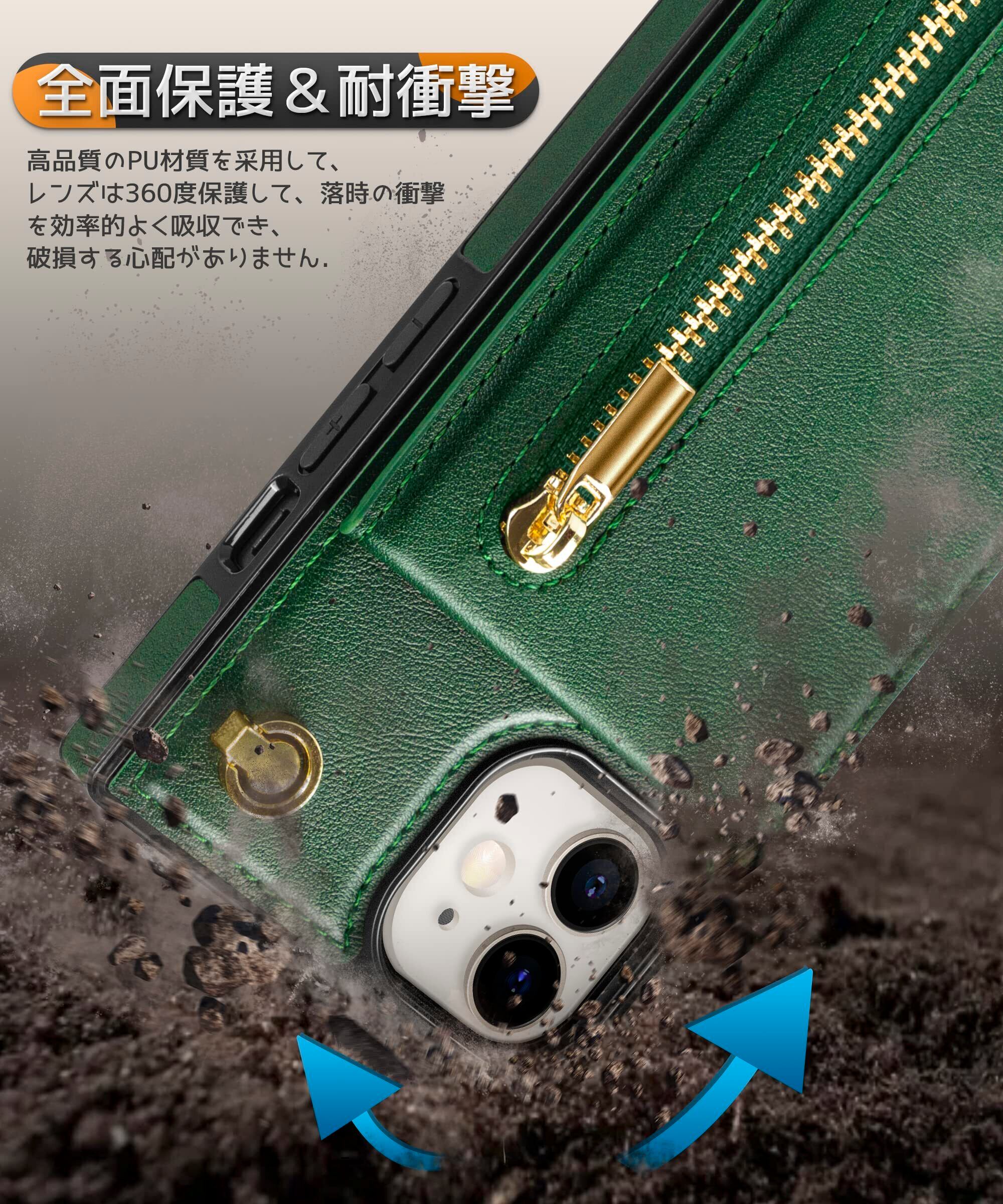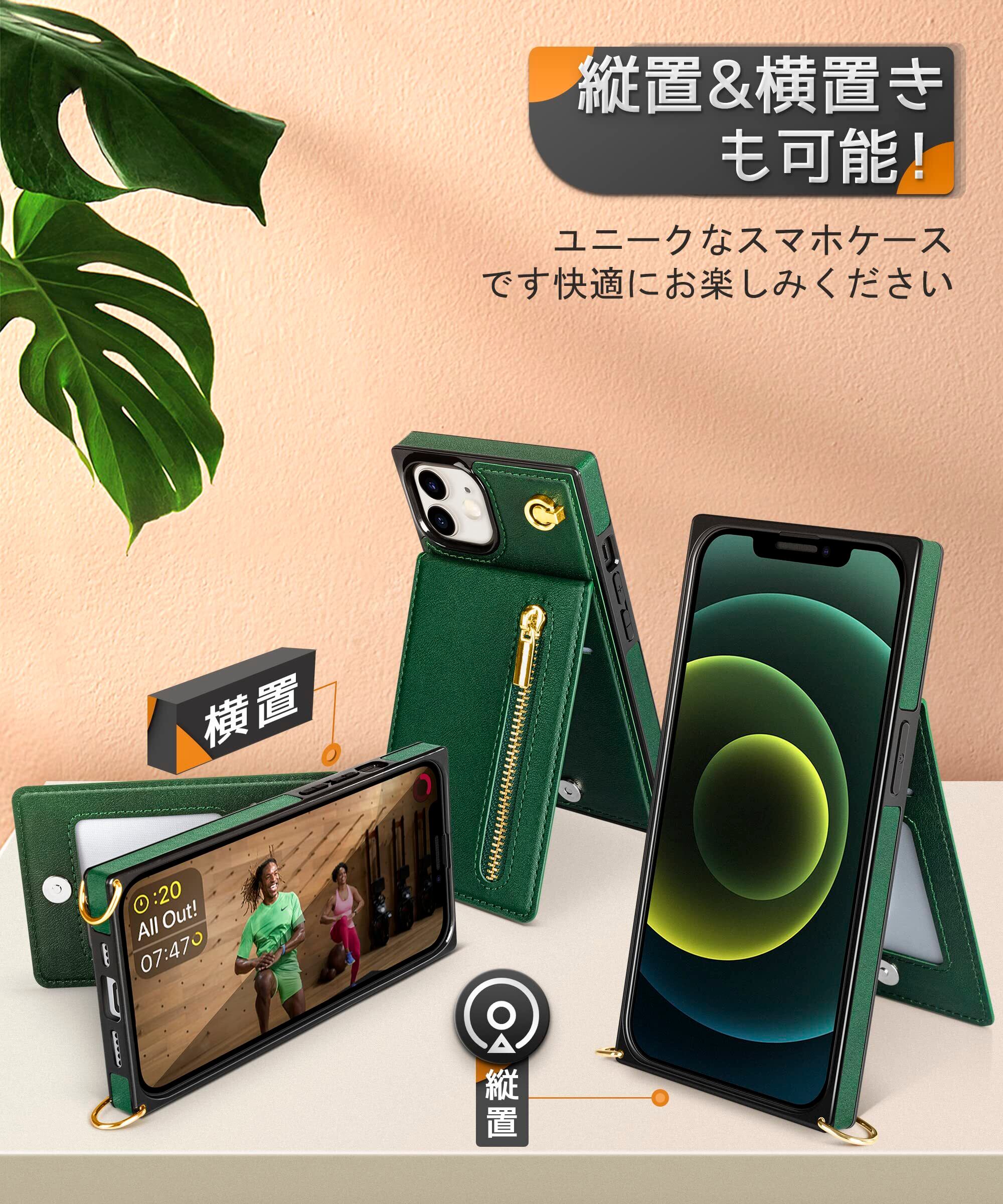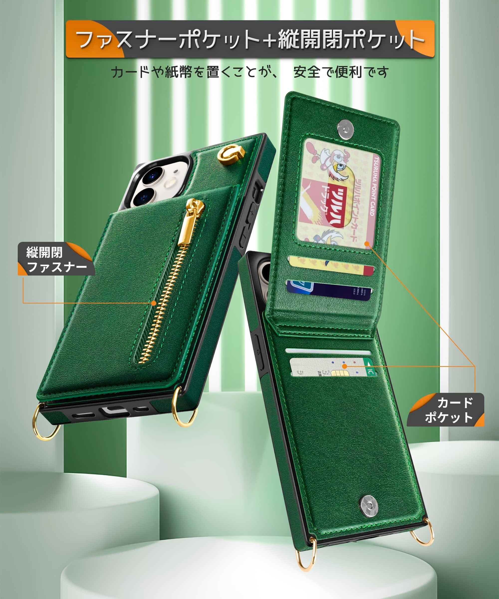 YIHARA iphone 12 /iphone 12Pro ケース手帳型 iphone 12 /iphone 12Proスマホ ケース 財布型 iPhone 12 /iphone 12Pro適用 携帯ケース 肩掛け 首かけ 斜めがけ ショルダー アイフォン 12 /12Pro ケース手帳型 背面 カード収納 ストラップ付き 上下開 長さ調整可能 グリーン