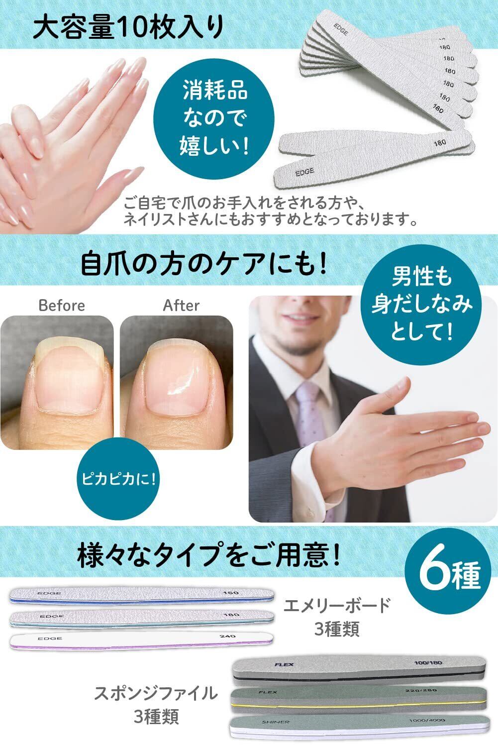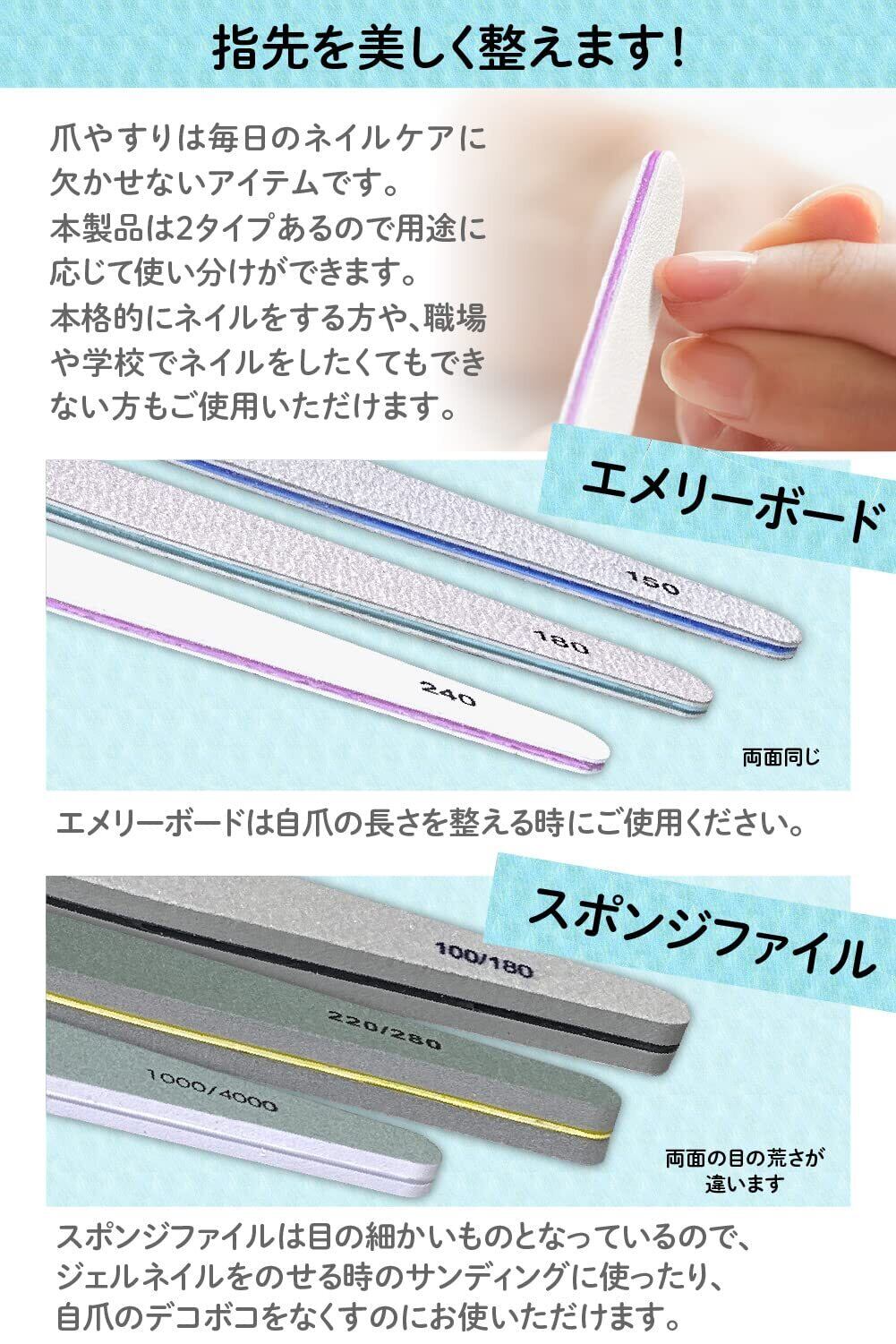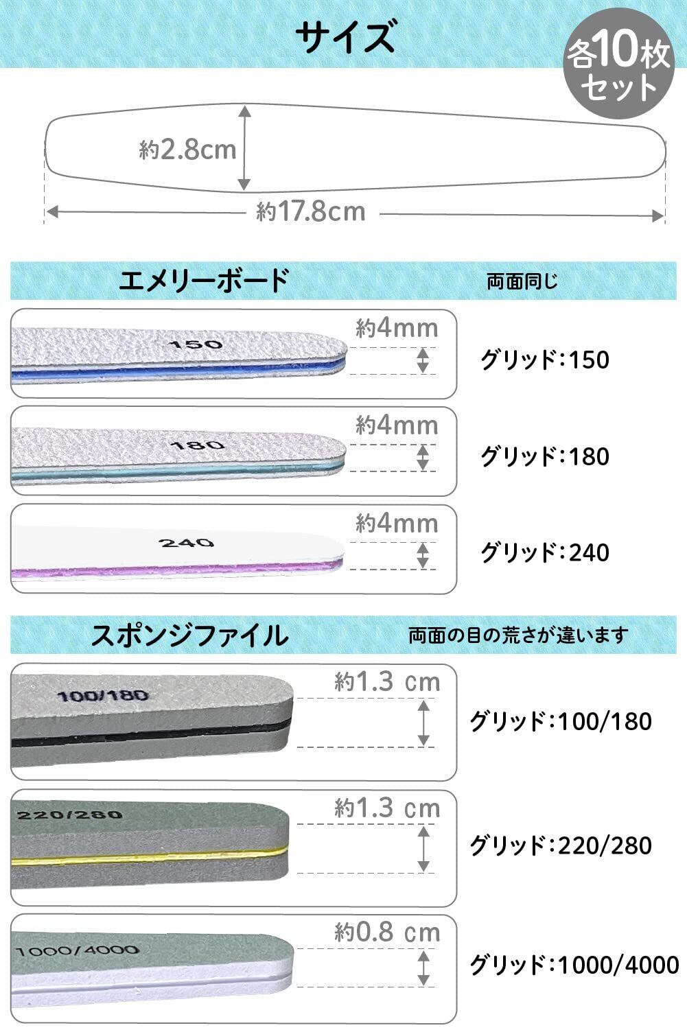 【 商品仕様 】 ●「タイプ」スポンジファイル(1000/4000、220/280、100/180)、エメリーボード(240、180、150)●「サイズ」※画像をご確認ください ※お客様のモニター環境等により実際の物と素材感、色が多少異なる場合がございます。