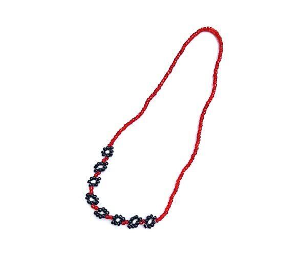 人気の花柄 赤ビーズ ブレスレット