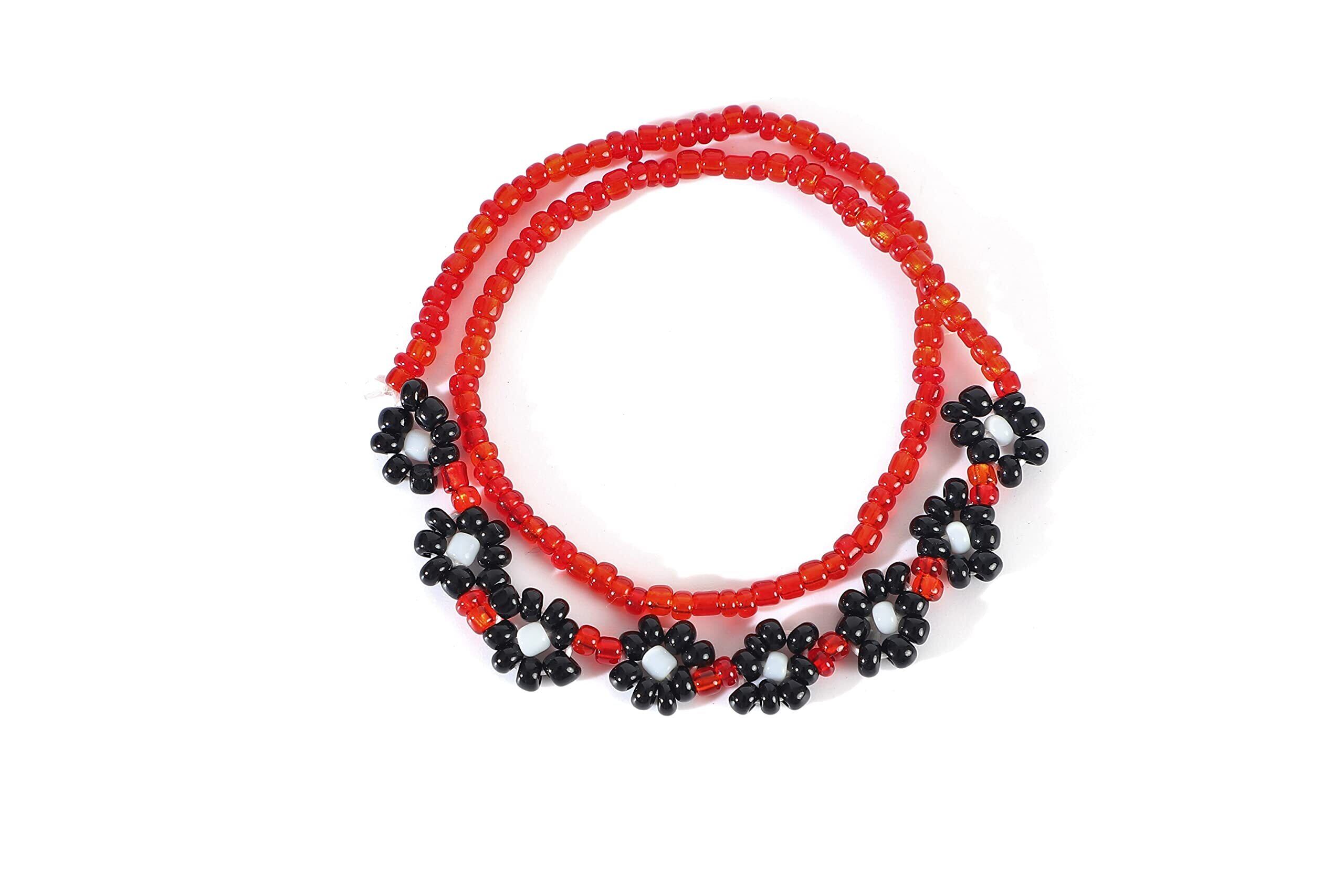 [AREUM] ビーズ ブレスレット 赤 花柄 伸縮性あり テテ着用モチーフ 重ね付け風 人気ファッション フリーサイズ